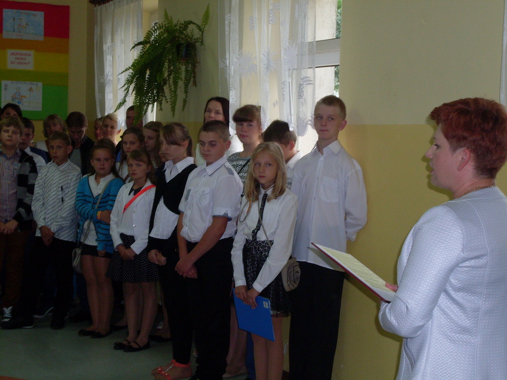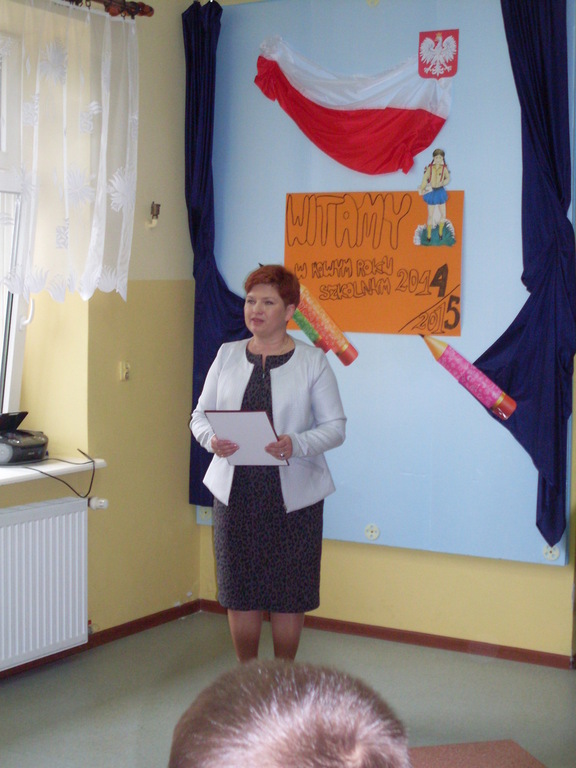 01.09.2014 r. o godzinie 9.00 odbyło się uroczyste rozpoczęcie roku szkolnego 2014/2015. Pani dyrektor Lilla Błaszczyk serdecnie przywitała uczniów, rodziców ora pracowników szkoły. Życzyła wszystkim uczniom owocnego poznawania świata, budowania serdecznych relacji koleżeńskich i podejmowania coraz to nowych wyzwań na polu nauki, kultury, sportu i osobistych zainteresowań. Życzyła wszystkim nam, całej społeczności szkolnej, by nadchodzący czas, był rokiem sukcesu, czasem zadowolenia i poczucia dumy ze zrealizowanych zadań, by nasz zapał i ciekawość świata trwały jak najdłużej, a sukcesy były ukoronowaniem naszego wspólnego edukacyjnego wysiłku.