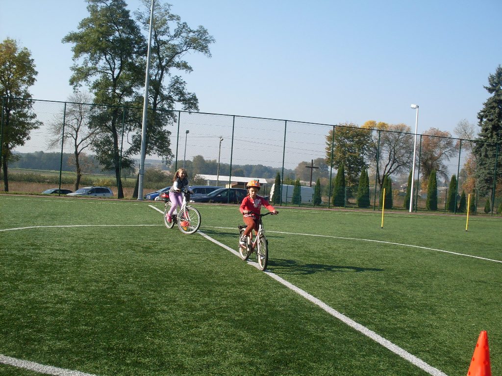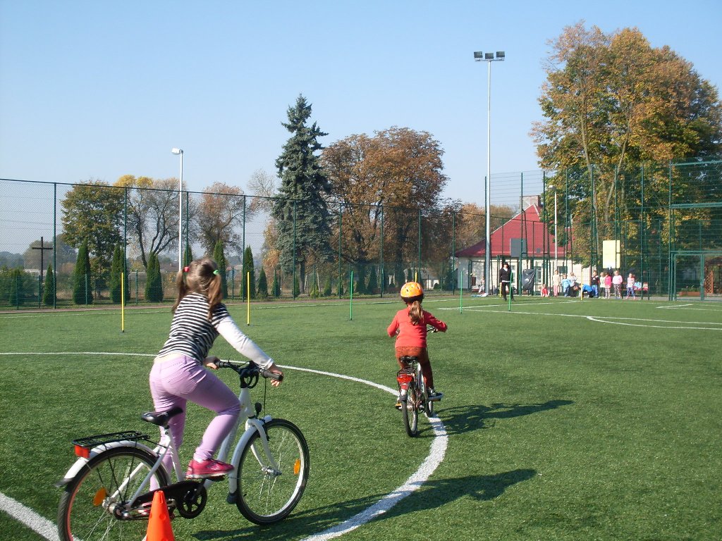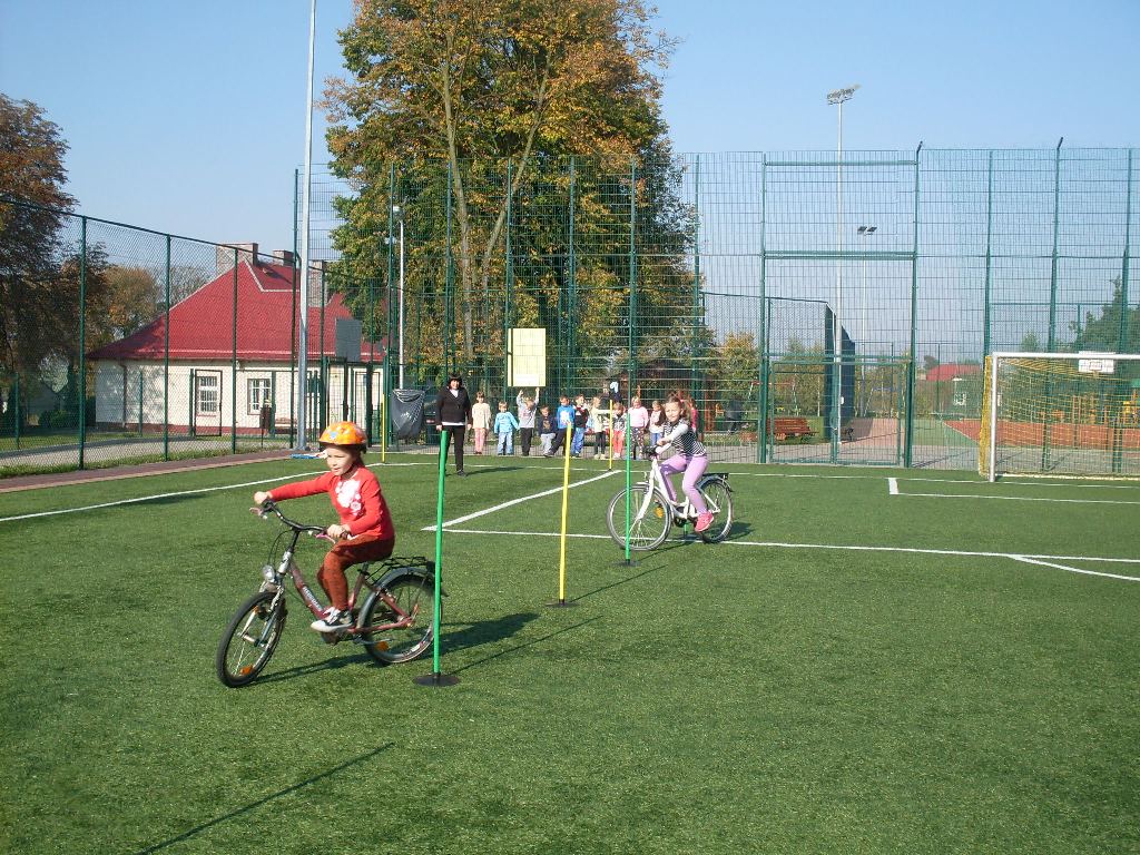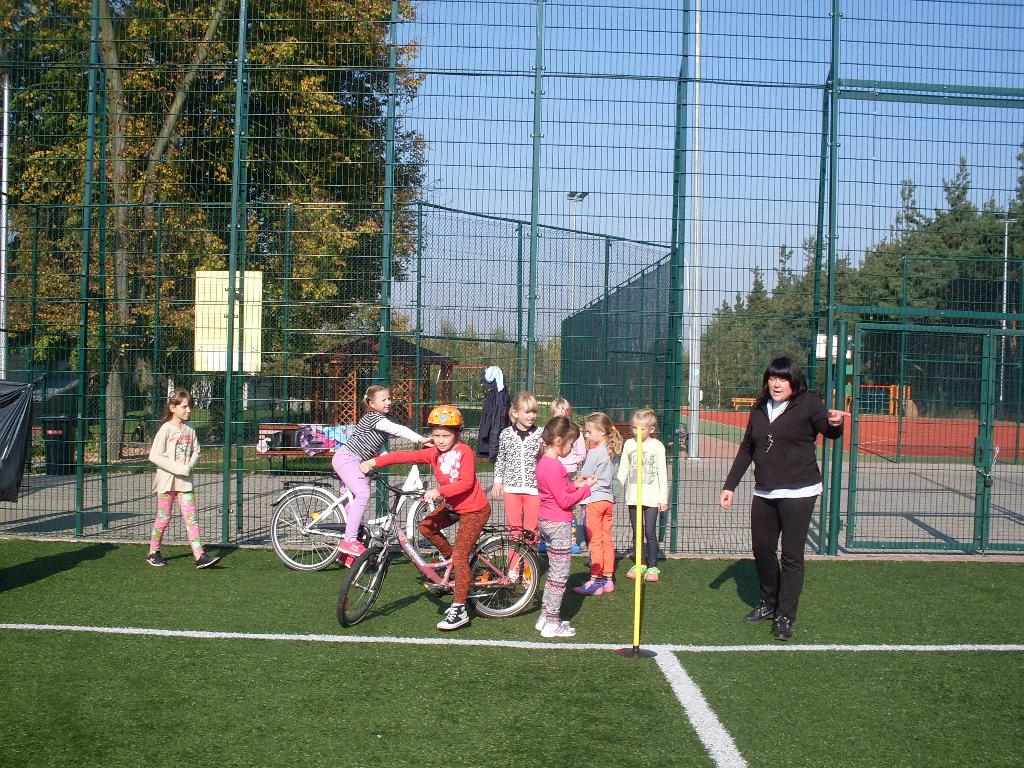 W ramach realizacji programu "Mały Mistrz" uczniowie kl.I pod opieką nauczyciela wychowania fizycznego p. D. Supeł i wychowawczyni p. H. Mazurek przygotowywali się do zdobycia sprawnosci rowerzysty. Dzieci ćwiczyły jazdę na wprost, po okręgu, slalom, zatrzymywanie się i ponowne ruszanie.