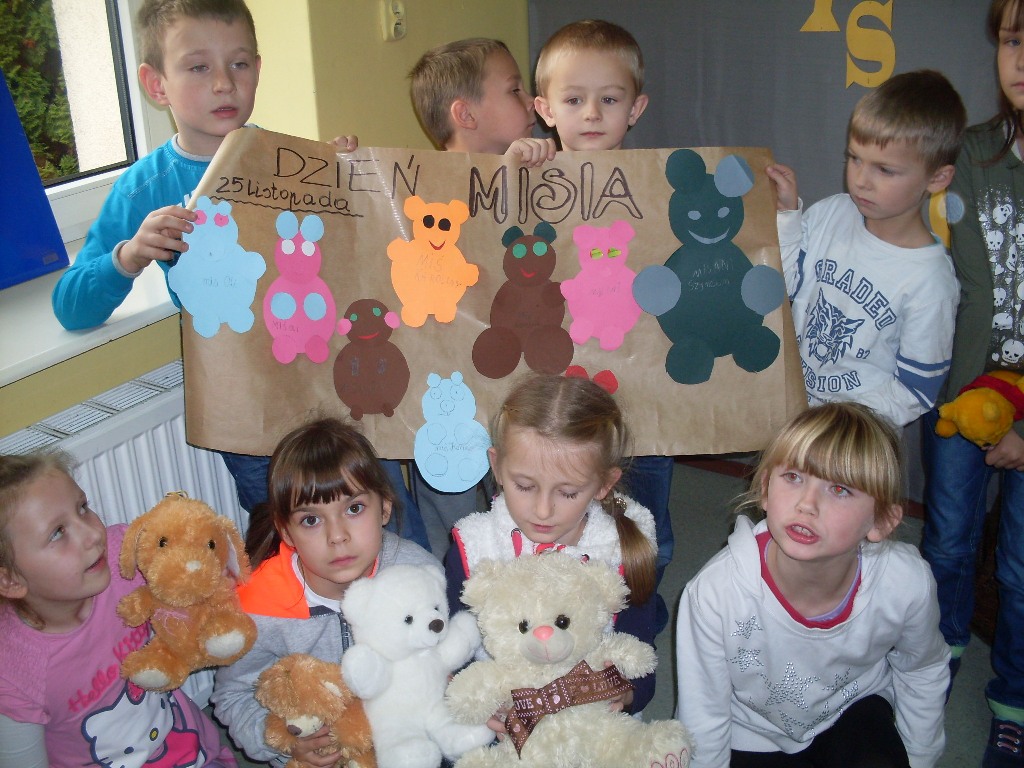 25 listopada obchodziliśmy w szkole "Dzień Pluszowego Misia". W klasach O-III odbywało się oglądanie filmów i bajek, słuchanie opowieści o misiach, wykonywanie misiów i medali dla nich, śpiewanie piosenek.