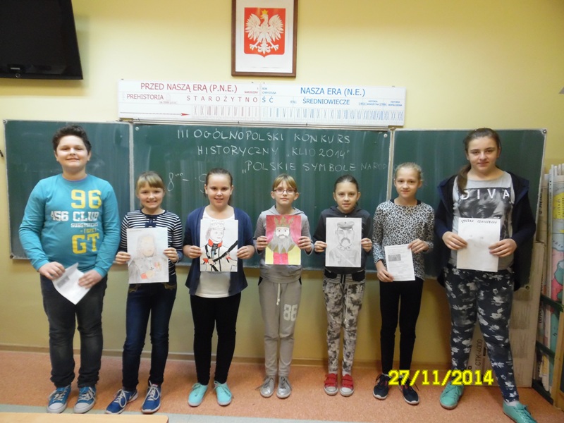 7 uczniów naszej szkoły wzięło udział w III Ogólnopolskim Konkursie historycznym „Klio 2014” pod hasłem „Polskie symbole narodowe”. Konkurs miał formę testu wiedzy oraz pracy plastycznej.