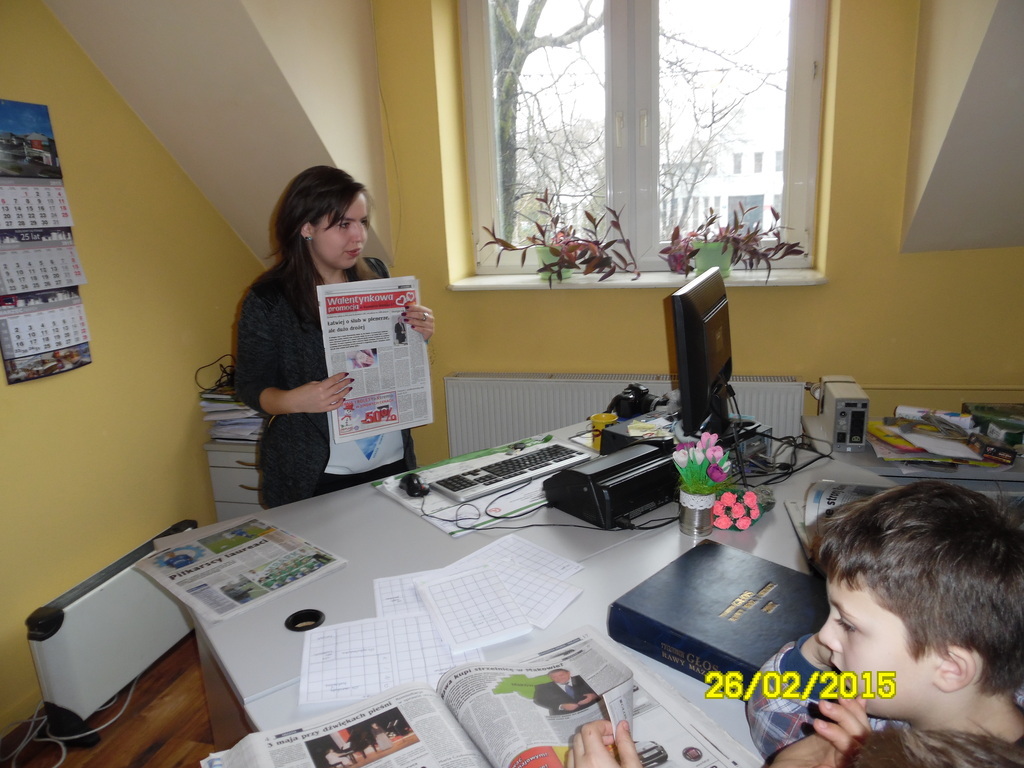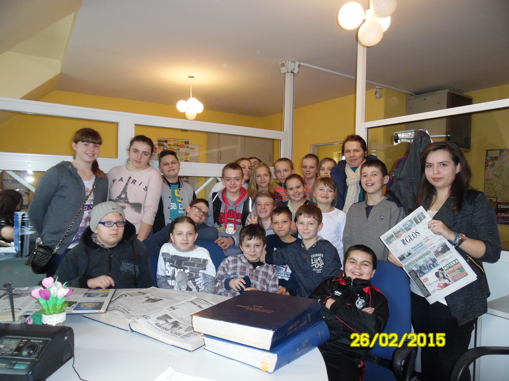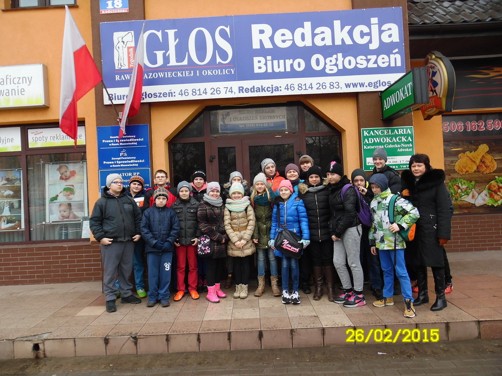 26 lutego grupa 22 uczniów klas IV-VI odwiedziła redakcję lokalnego tygodnika "Głos Rawy Mazowieckiej i Okolicy". Od pani Anny Kraćkowskiej, dziennikarki gazety z 10-letnim stażem, dzieci dowiedziały się, jak wygląda i powstaje gazeta, na czym polega i jak wygląda praca dziennikarza. Obejrzały również archiwalne wydania tygodnika.