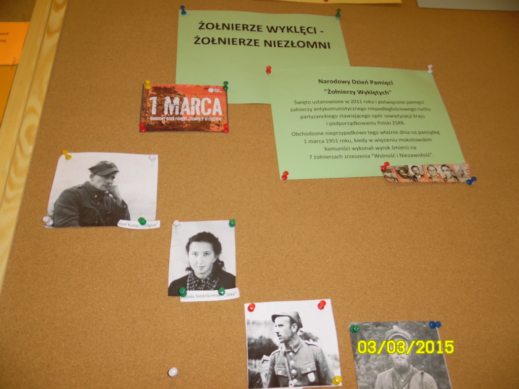 Od czterech lat 1 marca obchodzimy w naszym kraju Święto Żołnierzy Wyklętych, Niezłomnych. Święto to poświęcone jest pamięci żołnierzy antykomunistycznego podziemia niepodległościowego walczącego z władzą komunistyczną w latach po II wojnie światowej. Żołnierze ci zostali zamordowani i często pochowani w bezimiennych mogiłach. Władzy zależało na tym, aby pamięć o nich na zawsze zniknęła. Dzięki temu świętu wielu tych żołnierzy niezłomnych odzyskuje swoją pamięć i godność.