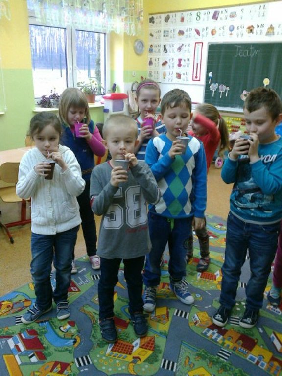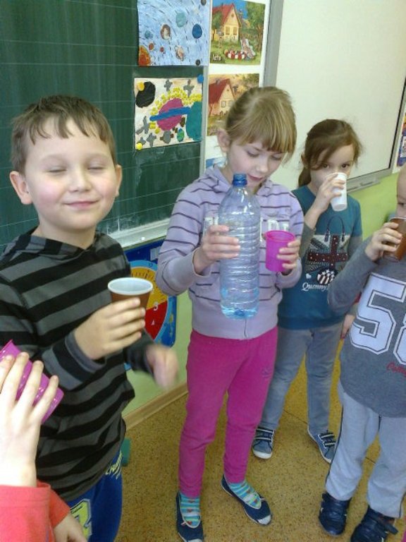 W ramach programu „Zdrowo jem, więcej wiem” uczniowie klasy I wzięli udział w zajęciach „Pijmy wodę na – zdrowie”. Podczas zajęć dzieci przeprowadzały różne eksperymenty z wodą, brały udział w konkursach, zaprezentowały się w teatrzyku dla kolegów. Główną atrakcją było wykonanie śmiesznego stworka Wodolubka, który zachęcał do picia wody i uczestniczył z dziećmi we wszystkich zajęciach związanych z tematem wody.