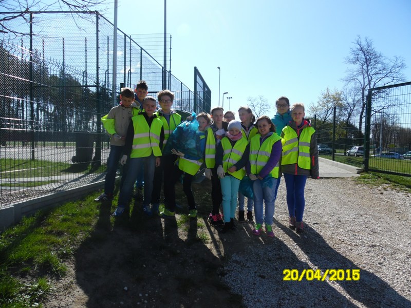 20 kwietnia to pierwszy dzień Tygodnia Ekologii w naszej szkole. Dominował kolor niebieski, co łatwo było zauważyć po strojach uczniów. Podczas słonecznej pogody dzieci wraz z wychowawcami wyruszyły sprzątać najbliższą okolicę. Rozdane zostały rekawiczki, worki. Dla bezpieczeństwa uczniowie założyli kamizelki odblaskowe. Zebrano kilkanaście worków śmieci.