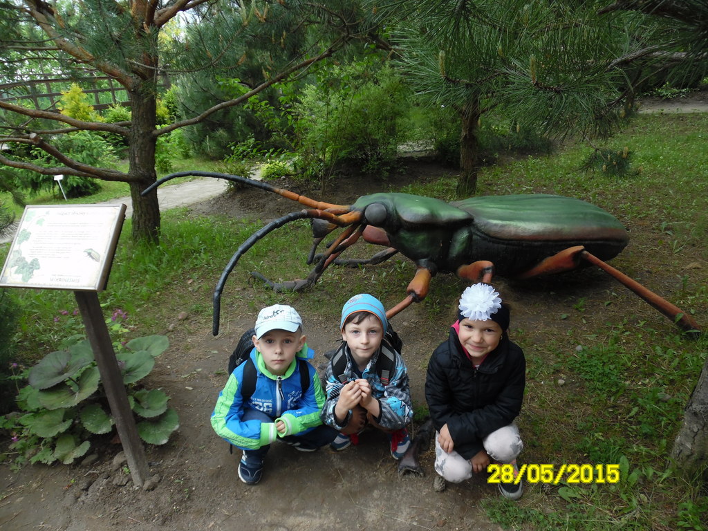 Park "Mikrokosmos" to niezwykłe miejsce, w którym oprócz wielu roślin w licznych odmianach, można zobaczyć niesamowite stwory, wyglądem przypominające przybyszów z kosmosu... Chodzi jednak o stworzenia z tego kosmosu, spod naszych stóp - mikrokosmosu. Wśród drzew i krzewów ukryte są wiernie odtworzone ogromnych rozmiarów kopie owadów, jakie można spotkać w naszym kraju: biedronki, skorka, stonki, trzmiela, turkucia podjadka, modliszki, chrząszcza, larwy pazia królowej i wiele innych. Po spacerze dzieci zasiadły do stolików, przy których malowały farbami gipsowe figurki poznanych owadów. Po solidnej porcji wiedzy przyrodniczej dotyczącej wspomnianych owadów, przekazanej w atrakcyjnej formie przez przewodników, był czas na chwilę relaksu na placu zabaw: zjazd na linie, huśtawki, ścianki wspinaczkowe, zjeżdżalnie, hamaki przestrzenne szachy. Zakup pamiątek zakończył pobyt w tym ciekawym miejscu.