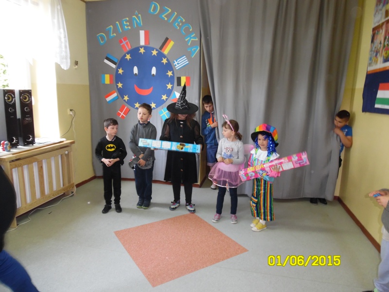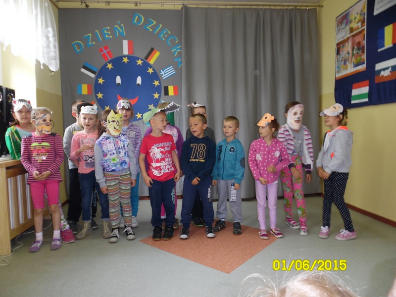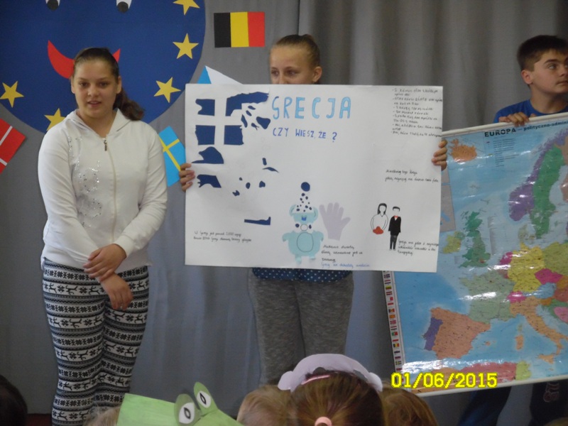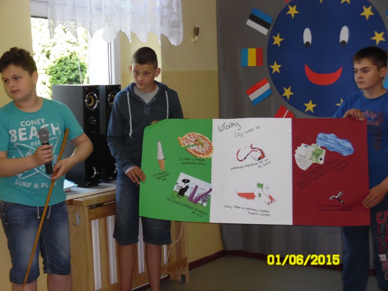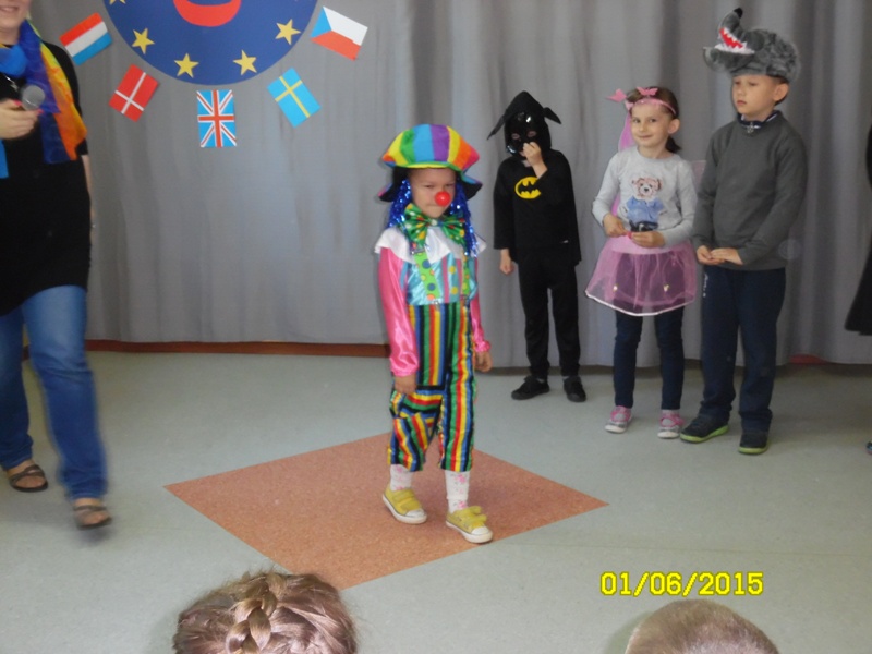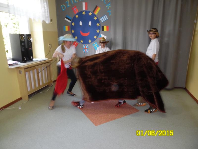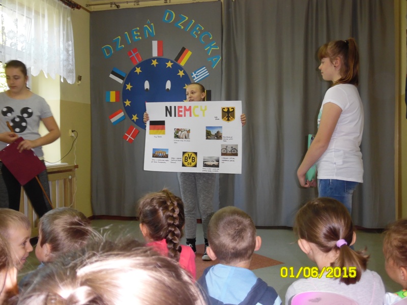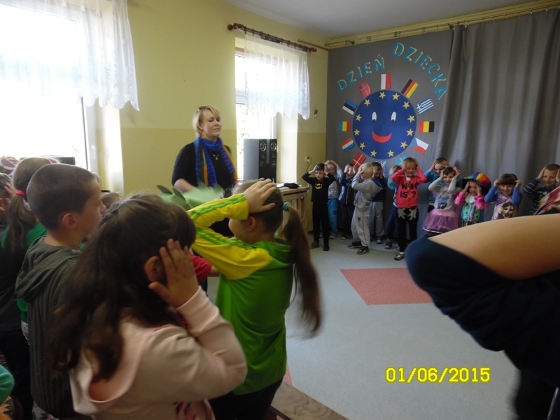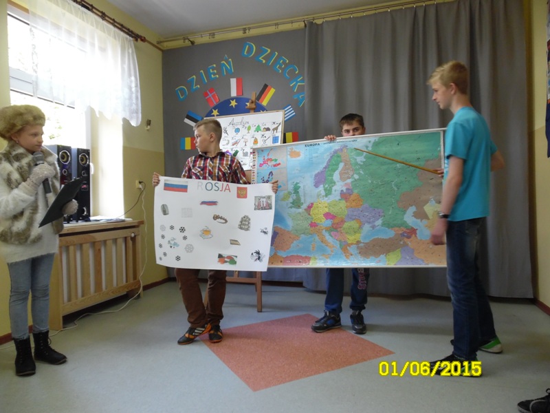 O samego rana dzieci uczestniczyły w Międzynarodowym Dniu Języków Obcych, którego obchody przygotowała pani Agnieszka Włostowska, nauczycielka języka angielskiego wraz z uczniami klas IV-VI. Dzieci z klas 0-III śpiewały po angielsku, natomiast uczennice klasy V zaśpiewały piosenki w języku francuskim i hiszpańskim. Odbyła się również próba zaśpiewania „Panie Janie” po angielsku, niemiecku, czesku i włosku. Dziewczęta z klasy V zaprezentowały kilka układów tanecznych do znanych przebojów, m.in. „Makarena” czy „Grek Zorba”, a kilkoro uczniów klasy IV odtańczyło corridę! Uczniowie klasy VI wykonali i pokazali wizytówki wybranych krajów europejskich: Włoch, Niemiec, Grecji, Rosji oraz dali próbkę rozmówek w językach tych krajów. W międzyczasie dzieci brały udział w konkursach dotyczących: znajomości flag krajów europejskich, rozpoznawania odgłosów zwierząt i nazywania ich w języku angielskim, rozpoznawania słowa „dziękuję” w różnych językach. Za poprawne odpowiedzi otrzymywały kartoniki, które później wymieniły na nagrody.