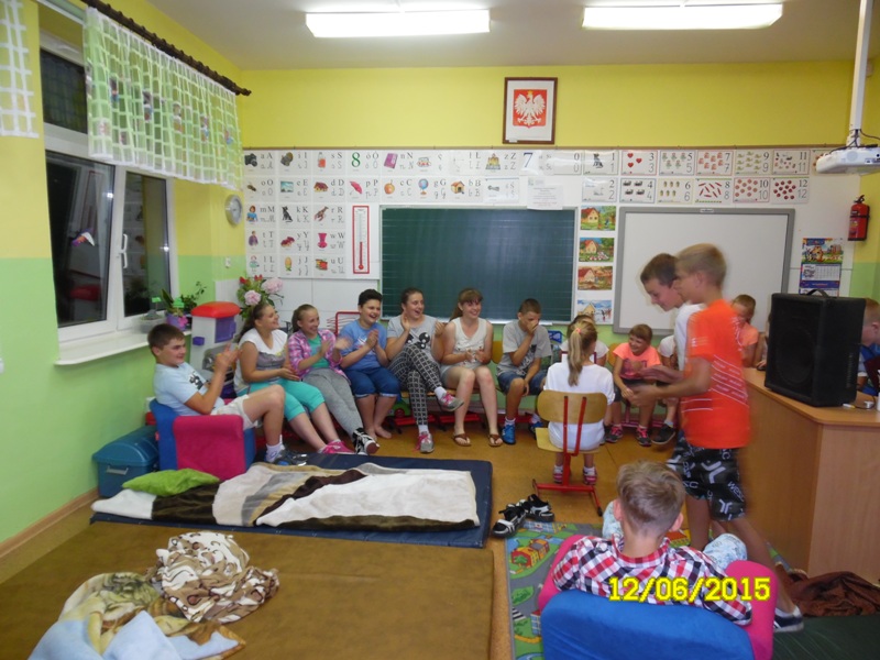 Impreza rozpoczęła się o godz. 18 meczem w piłkę nożną. Następnie odbyła się dyskoteka już w budynku szkoły, wspólne oglądanie ulubionych kreskówek i filmów, gry i zabawy, m.in. szkolna wersja „Familiady”. Świadomość nocowania poza domem i to