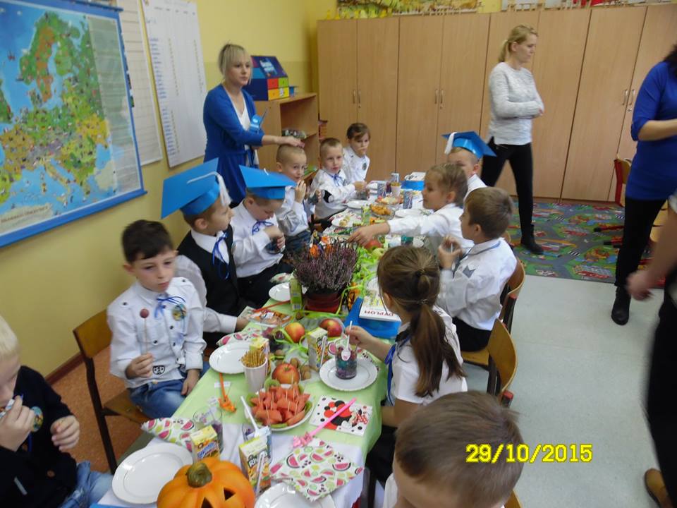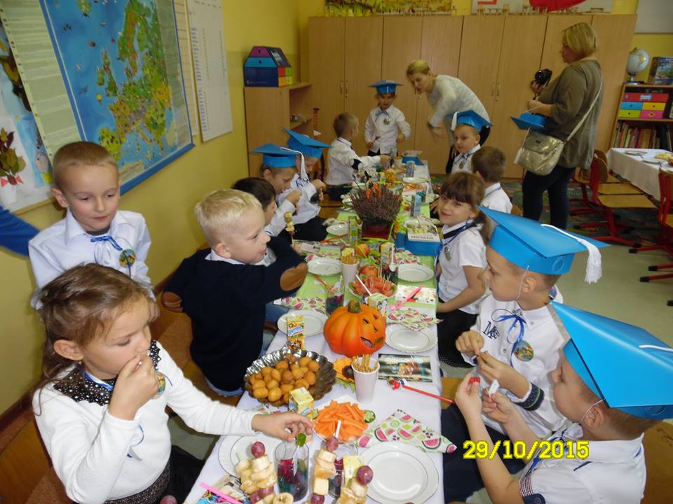 To wielki dzień w życiu naszych najmłodszych uczniów. Były wiersze, piosenki, ślubowanie, pasowanie na ucznia klasy I. Po części oficjalnej odbył się poczęstunek przygotowany przez rodziców - było smacznie, zdrowo, kolorowo. Wszystkim PIERWSZAKOM życzymy wielu sukcesów w nauce i samych radosnych dni w szkole.