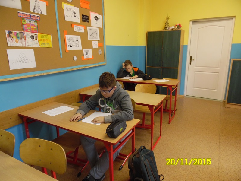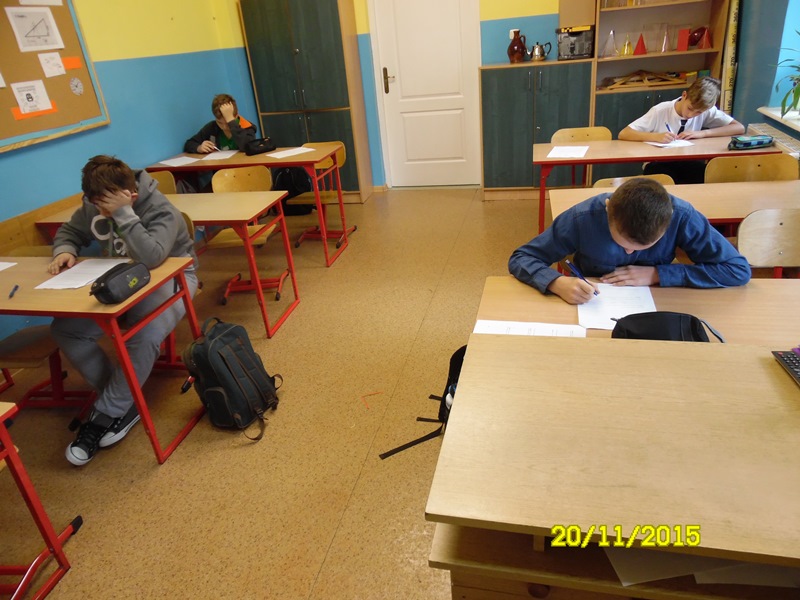 Po raz drugi uczniowie naszej szkoły przystąpili do tego rodzaju konkursu. Dzisiaj odbyły się eliminacje szkolne. Swoich sił spróbowało trzech uczniów z klasy V i jeden z klasy VI. Wszyscy prezentują wysoki poziom wiedzy i umiejętności z matematyki. Wyniki za kilka dni. Trzymamy kciuki.