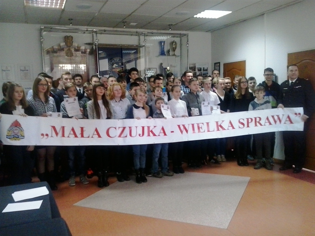 W dniu 16.03.2016r. odbyły się eliminacje powiatowe Ogólnopolskiego Turnieju Wiedzy Pożarniczej „Młodzież zapobiega pożarom” w Komendzie Powiatowej Państwowej Straży Pożarnej w Rawie Mazowieckiej. Naszą szkołę reprezentowali uczniowie klasy V: Kuba Gąsiorowski, Szymon Jaśkiewicz i Mikołaj Marud. Do finału zakwalifikował się Kuba, który po dogrywce zajął ostatecznie miejsce III . Turniej ma na celu popularyzowanie znajomości przepisów przeciwpożarowych, zasad na wypadek pożaru, umiejętności posługiwania się podręcznym sprzętem gaśniczym, wiedzy na temat techniki pożarniczej, organizacji ochrony przeciwpożarowej oraz historii i tradycji ruchu strażackiego. Zakres tematyczny turnieju jest bardzo duży i wymaga poświęcenia dużej ilości czasu aby go opanować. Dlatego gratulujemy Kubie i życzymy podobnego sukcesu w przyszłym roku szkolnym.