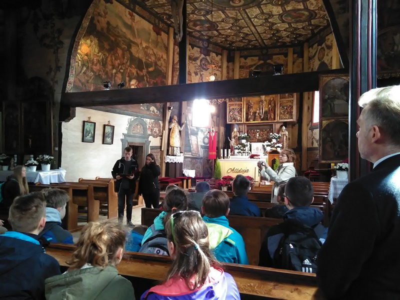 W poniedizłek, 25 kwietnia 2016 r. w Centrum Aktywności Kulturalnej Boguszycach odbył się etap miejsko-gminny XII Turnieju Wiedzy Przyrodniczej Szkolnych Kół Ligi Ochrony Przyrody klas IV-VI szkół podstawowych. Naszą szkołę reprezentowało trzech uczniów: Patrycja Haraszna, Katarzyna Pietrasik i Krzysztof Kłos. Po rozwiązaniu testu uczniowie zaproszeni zostali na słodki poczęstunek, poznając przy okazji krótką historię Boguszyc przedstawioną przez panią Janinę Ornafę. Następnie uczniowie gimnazjum zaprosili wszystkich uczestników turnieju do zwiedzania kościoła św. Stanisława, wybudowanego w latach 1550 - 1558, jednego z najcenniejszych zabytków drewnianej architektury sakralnej w Polsce.