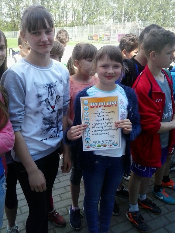 Nasze dziewczęta zajęły I miejsce w czwórboju LA rozgrywanym na szczeblu gminy (10.05.2016r.). Czwórbój to cztery konkurencje: bieg na 60m, skok w dal, rzut piłeczką palantową i bieg na 600 lub 1000m. Najlepszą zawodniczką została Ewelina Kurek zdobywając 209 pkt. W zawodach uczestniczyli również chłopcy zajmując III miejsce.