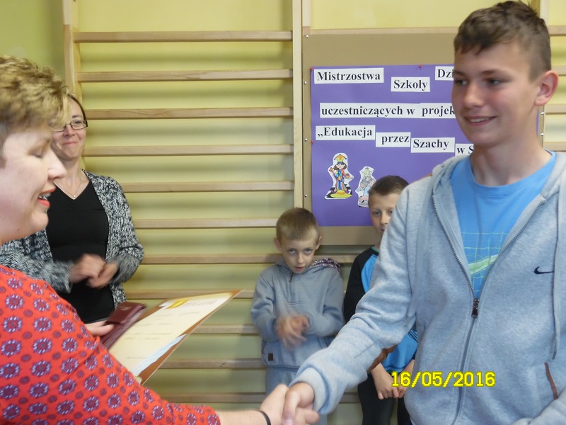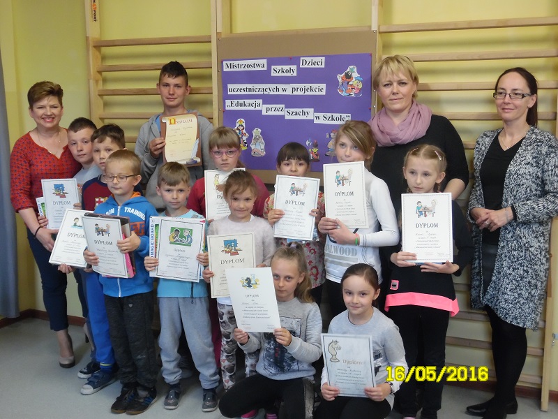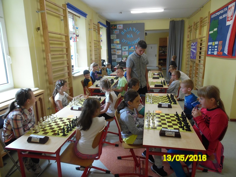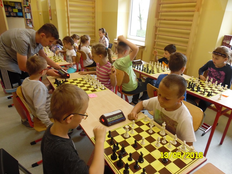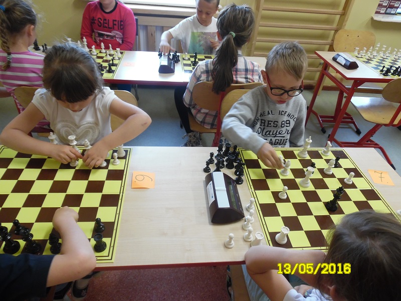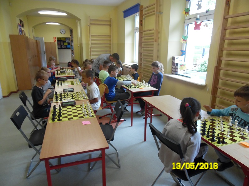 W piątek, 13 maja uczniowie klasy pierwszej i drugiej wzięli udział w pierwszych w swoim życiu mistrzostwach szachowych. Uczniowie ci są uczestnikami projektu "Edukacja przez Szachy w Szkole" i tym samym szachy są dla nich przedmiotem obowiązkowym, wpisywanym na świadectwo razem z oceną opisową z tego przedmiotu.