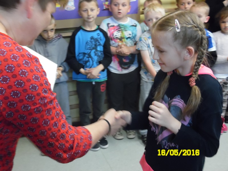 Najlepsi uczniowie w poniedziałek, 16 maja na apelu szkolnym otrzymali od Pani Dyrektor gratulacje i podziękowania wraz z dyplomami i nagrodami. Krzysztof Kłos otrzymał pochwałę Dyrektora Szkoły.