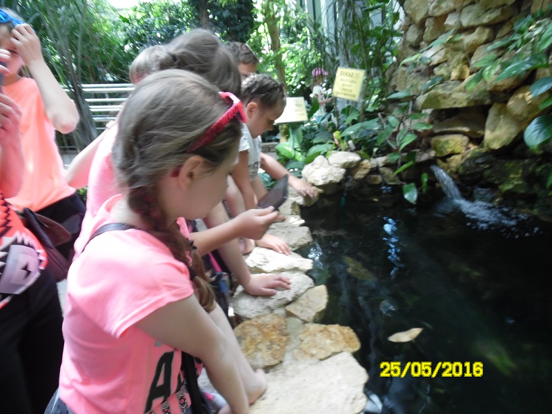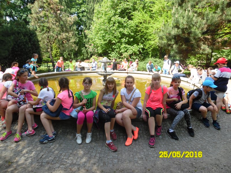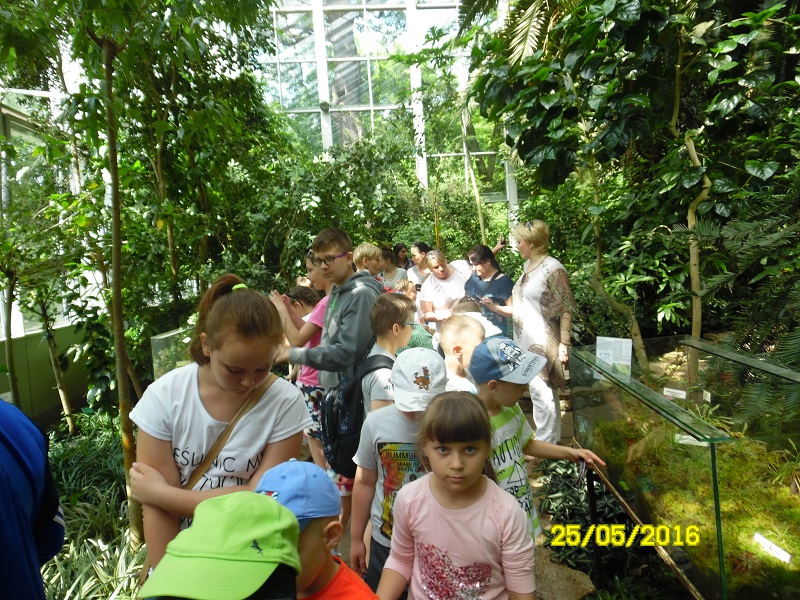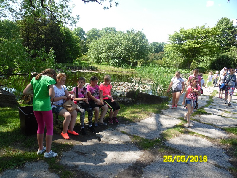 Dnia 25 maja br. uczniowie szkoły uczestniczyli w wycieczce w ramach realizacji programu ekologicznego "Z parapetu na rabatkę". Celem wycieczki była Łódź, a w niej: Palmiarnia, Ogród Botaniczny i zoo. W Palmiarni dzieci podziwiały piękne okazy egzotycznych drzew i krzewów oraz żyjących tam ryb i żółwi. Wytchnieniem od upału był spacer po Ogrodzie Botanicznym, a największą frajdę sprawiło wycieczkowiczom przechodzenie przez sadzawkę po kamieniach. Na zakończenie dzieci zwiedziły łódzkie zoo oglądając: tygrysy, żyrafy, małpy, różne ptaki, gady i płazy.
