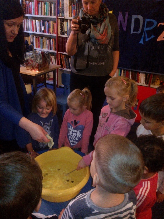 Ubiegły tydzień dla uczniów z zerówki był pełen wrażeń, odbyły wycieczkę do Biblioteki Dziecięcej w Rawie Mazowieckiej. Dzieciaki dowiedziały się o tradycjach wróżb andrzejkowych, wysłuchały wiersze czytane przez panią bibliotekarkę. Wzięły udział w kilku wróżbach, wybierały przedmiot z tajemniczego pudła, wrzucały grosz do „studni”, ustawiały buty itp. Bibliotekarka oprowadziła dzieci między regałami z książkami, opowiadała o ciekawych bohaterach, zachęcając do czytania, zapisywania do biblioteki. Dzieciaki mogły wybrać książki