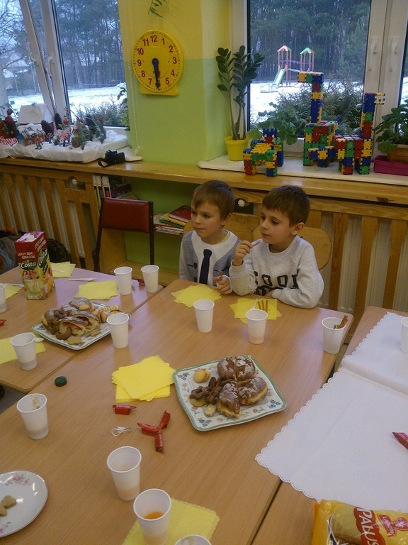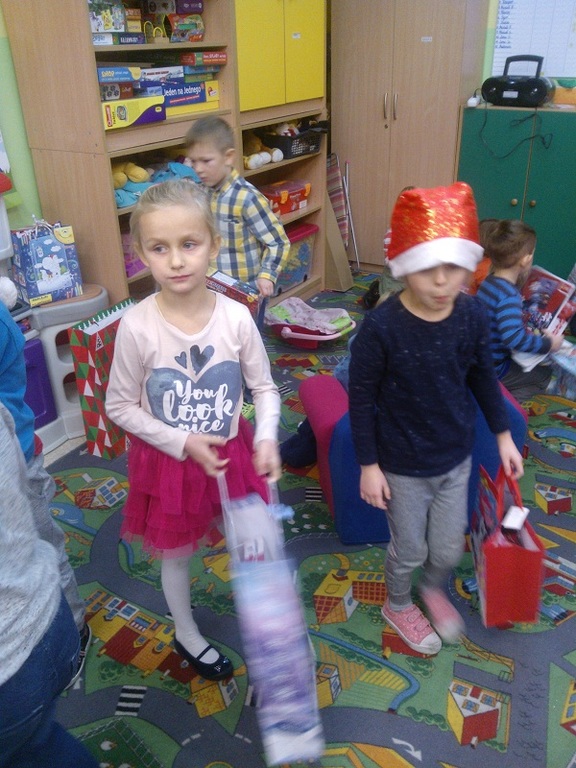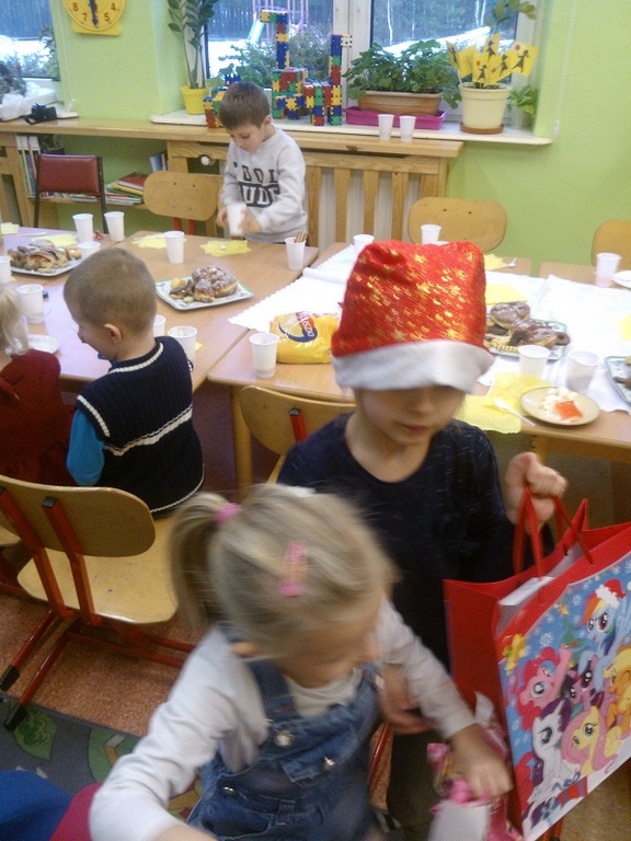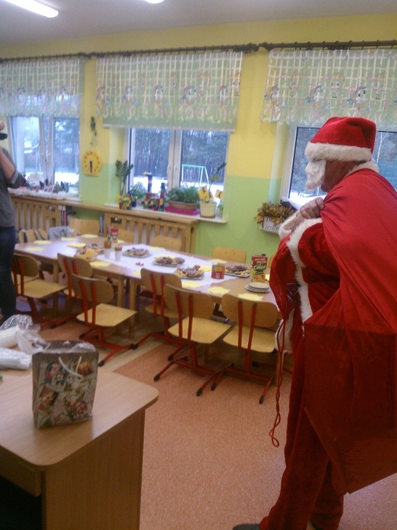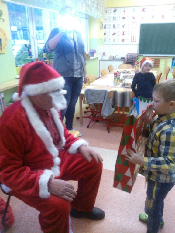 6 grudnia – Mikołajki, w tym dniu dzieci z niecierpliwością czekały na przybycie gościa z workiem prezentów. Zaśpiewały piosenki, powiedziały krótkie wierszyki, z przejęciem odbierały prezenty od Mikołaja. Uczniowie z zerówki uczyli się również pełnienia roli gospodarzy wobec zaproszonych gości – dzieci z przedszkola. Po obejrzeniu prezentów, wspólnym poczęstunku wszycy wesoło się bawili.