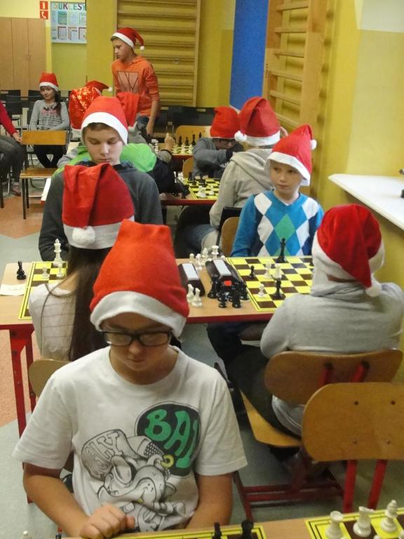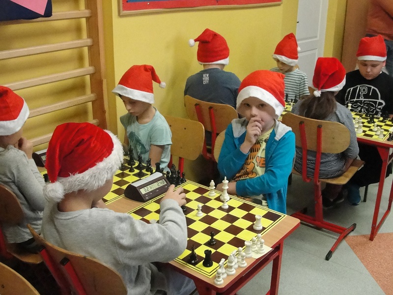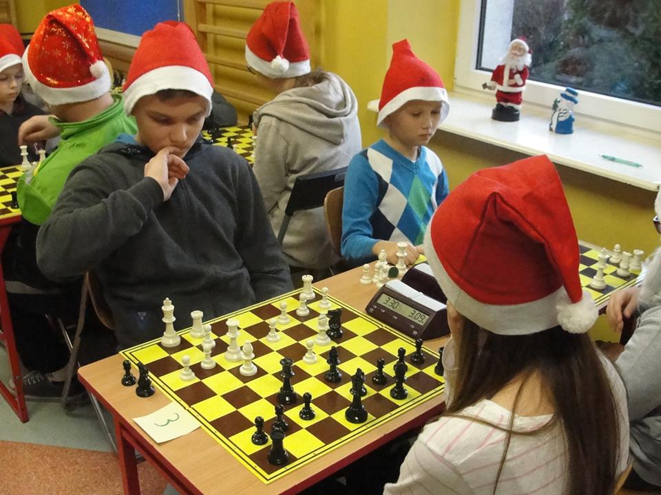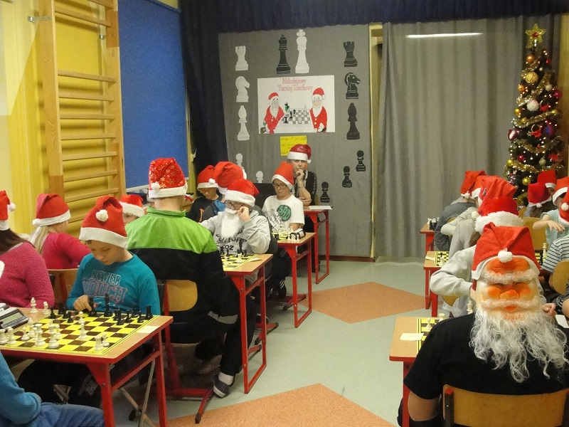 Po raz pierwszy w naszej szkole miał miejsce Mikołajkowy Turniej Szachowy. Cieszył się dużym zainteresowaniem, gdyż aż 28 zawodników wzięło w nim udział. Biletem wstępu była czapka Mikołaja, w której należało rozegrać wszystkie partie. Uczestnicy musieli wykazać się elementarną wiedzą szachową, by rozgrywane partie mogły przebiegać prawidłowo. Turniej rozgrywany był systemem szwajcarskim, każdy zawodnik miał do rozegrania 9 partii. Po kilkugodzinnych zmaganiach wyłonieni zostali najlepsi zawodnicy, a byli nimi: 1. Szymon Jaśkiewicz, 2. Sebastian Bernacik, 3. Mikołaj Misztal, 4. Mikołaj Marud, 5. Jakub Bernacik, 6. Katarzyna Rochmińska. Zwycięzcy otrzymali pamiątkowe dyplomy a wszyscy uczestnicy drobne upominki.