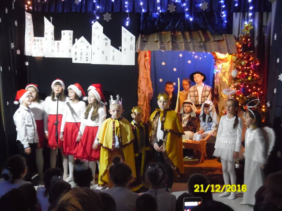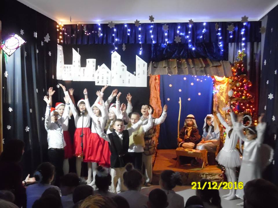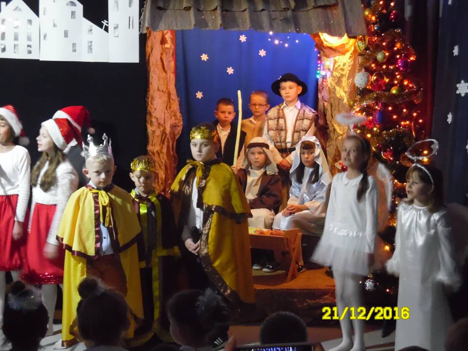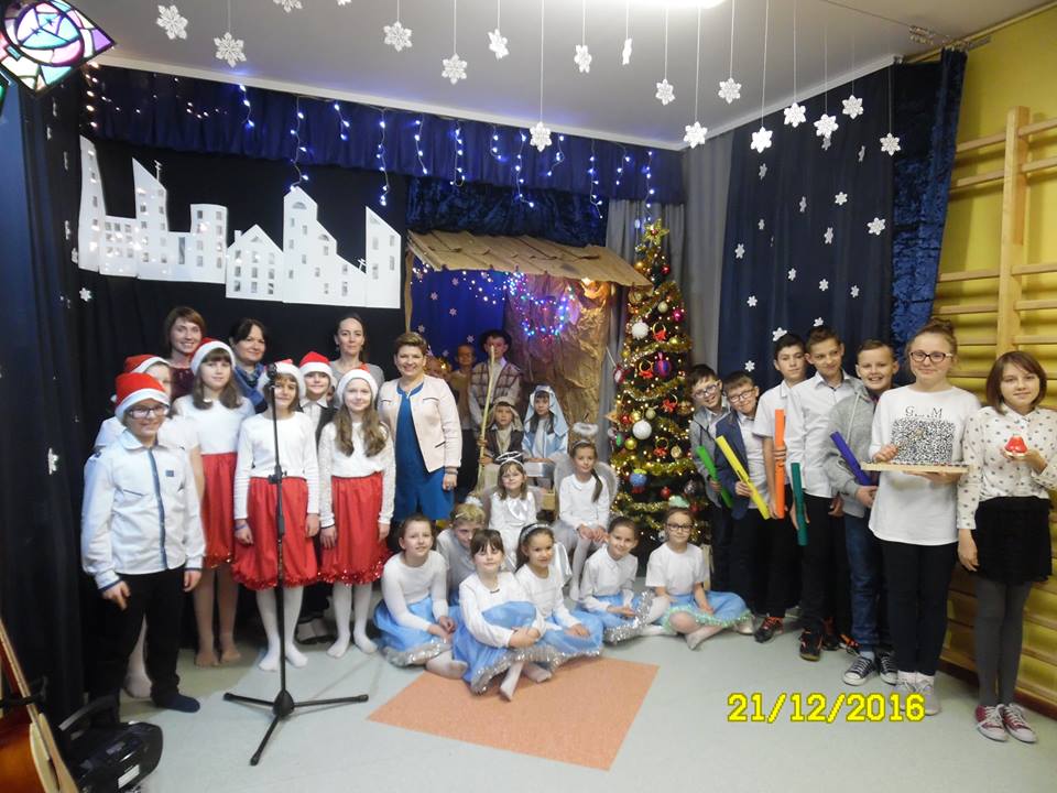 W środę, 21 grudnia odbyły się w naszej szkole jasełka. Przepiękne przedstawienie uświetnili swoją obecnością przybyli do nas goście: Irena Lesiak - Dyrektor Kuratorium Oświaty w Łodzi delegatura w Skierniewicach, o. Jacek Wróblewski - proboszcz parafii św. Pawła od Krzyża. Władze Gminy reprezentowały Panie: Zofia Maciejak i Katarzyna Kucińska. Przedstawienie słowno-muzyczne przeplatane śpiewem chóru prowadziło nas do Betlejem.