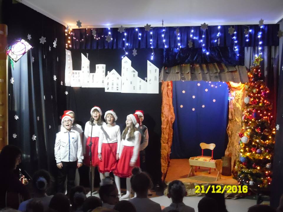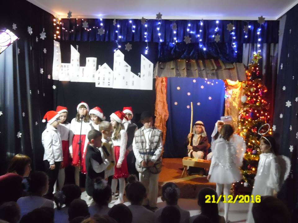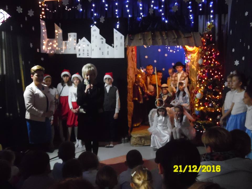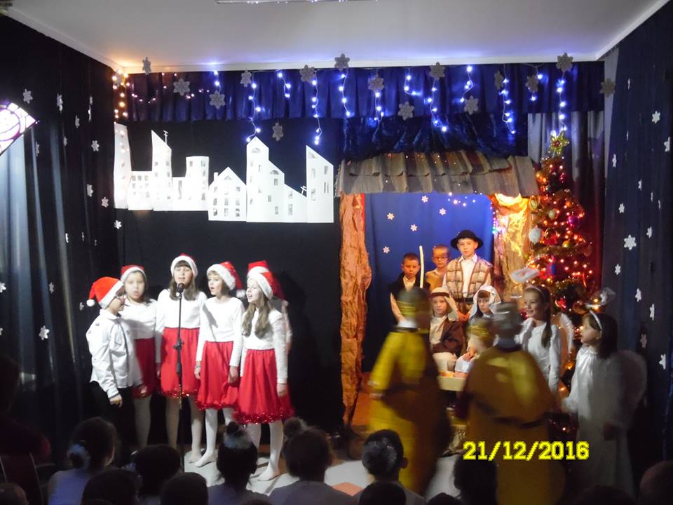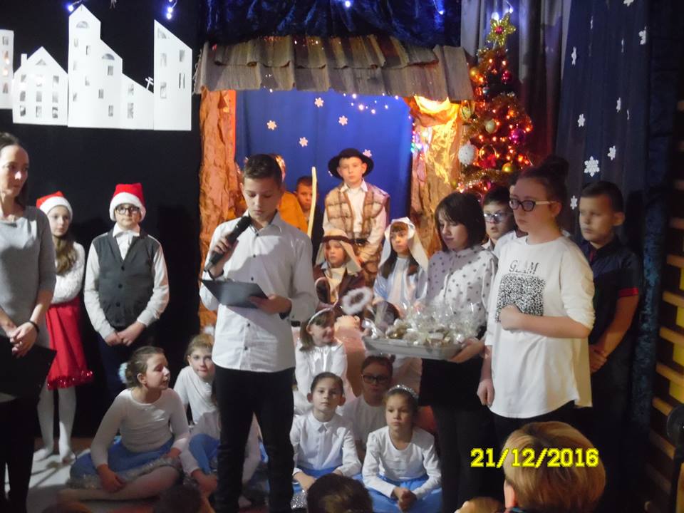 W środę, 21 grudnia odbyły się w naszej szkole jasełka. Przepiękne przedstawienie uświetnili swoją obecnością przybyli do nas goście: Irena Lesiak - Dyrektor Kuratorium Oświaty w Łodzi delegatura w Skierniewicach, o. Jacek Wróblewski - proboszcz parafii św. Pawła od Krzyża. Władze Gminy reprezentowały Panie: Zofia Maciejak i Katarzyna Kucińska. Przedstawienie słowno-muzyczne przeplatane śpiewem chóru prowadziło nas do Betlejem.