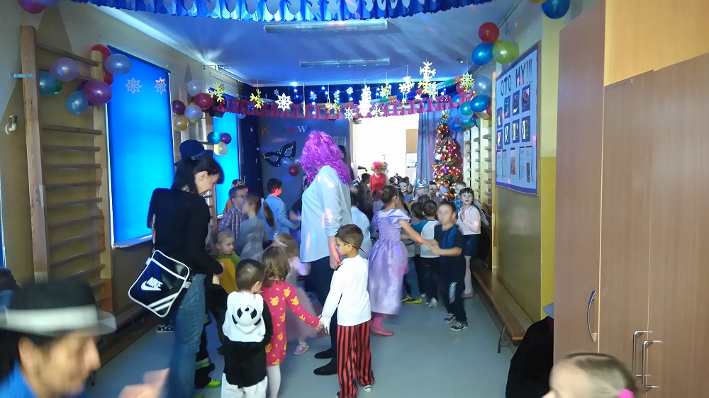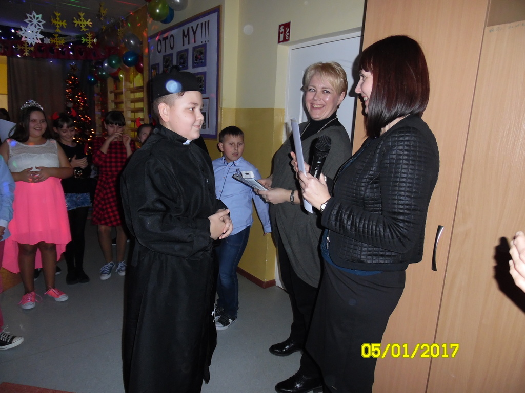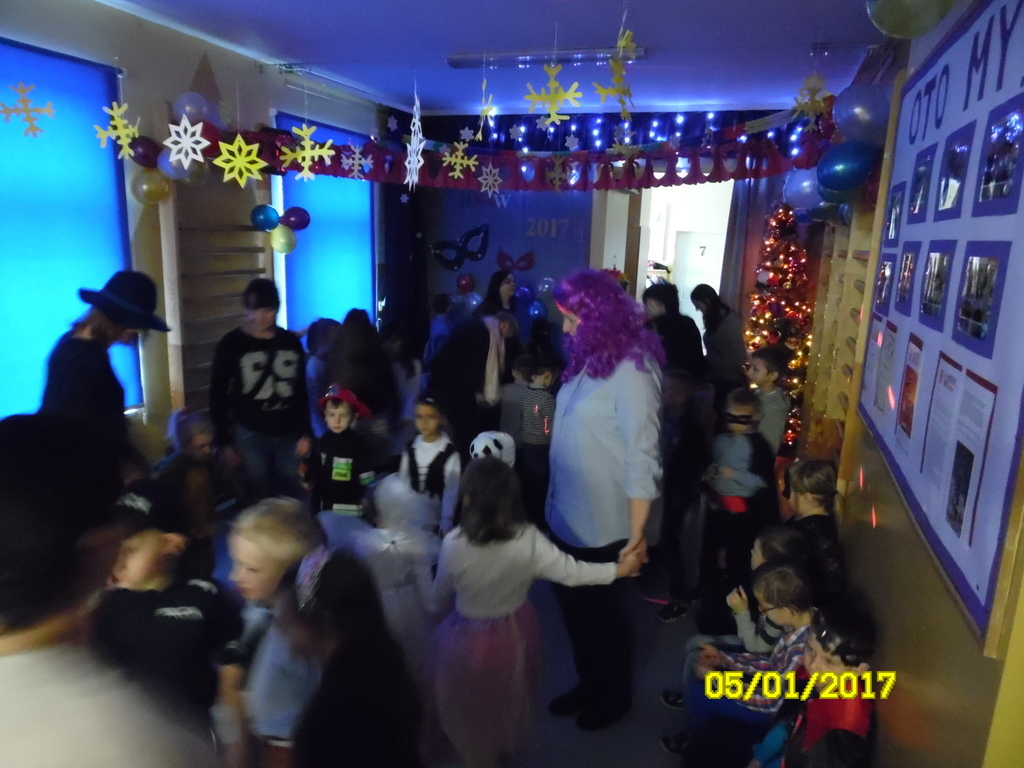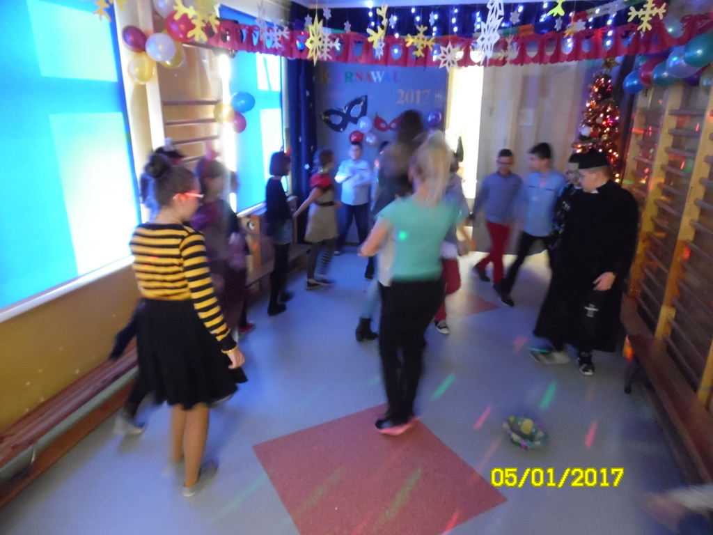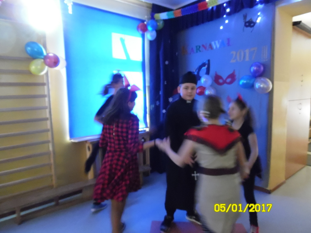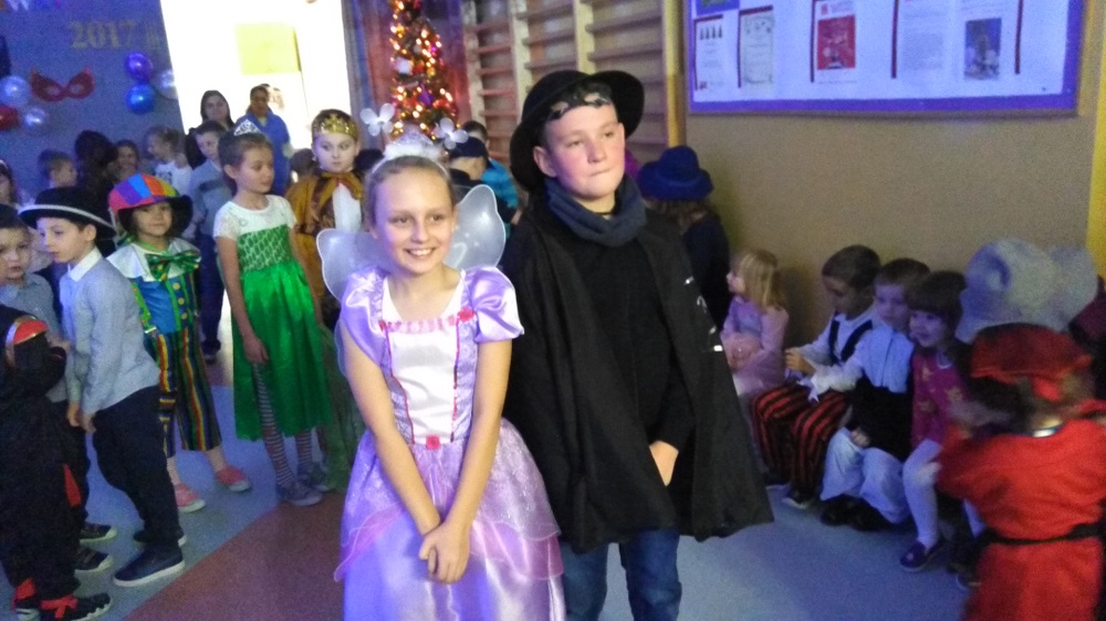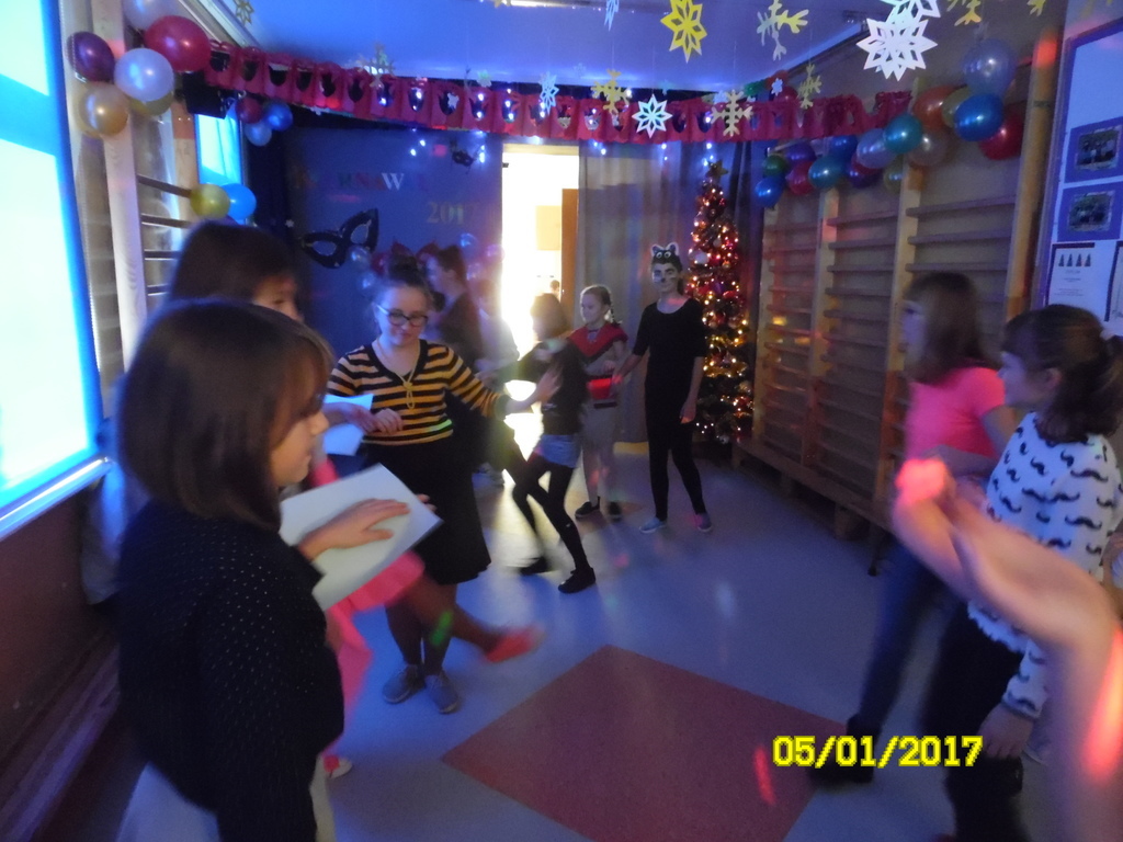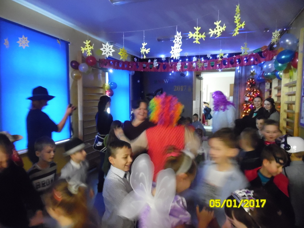 W miniony czwartek, 5 stycznia br., w naszej szkole odbyła się zabawa karnawałowa. Uczniowie, rodzice i nauczyciele świetnie się bawili w rytm najpopularniejszych przebojów muzycznych. Nie zabrakło konkursów, wspólnych zabaw i tańców. Wybrano królów i królowe balu. W kategorii przedszkole i klasa 0 królową została Maja Białek, a królem Igor Macierzyński. Natomiast w klasach I-III królową wybrano Wiktorię Witek, a królem został Dominik Gmyrek.