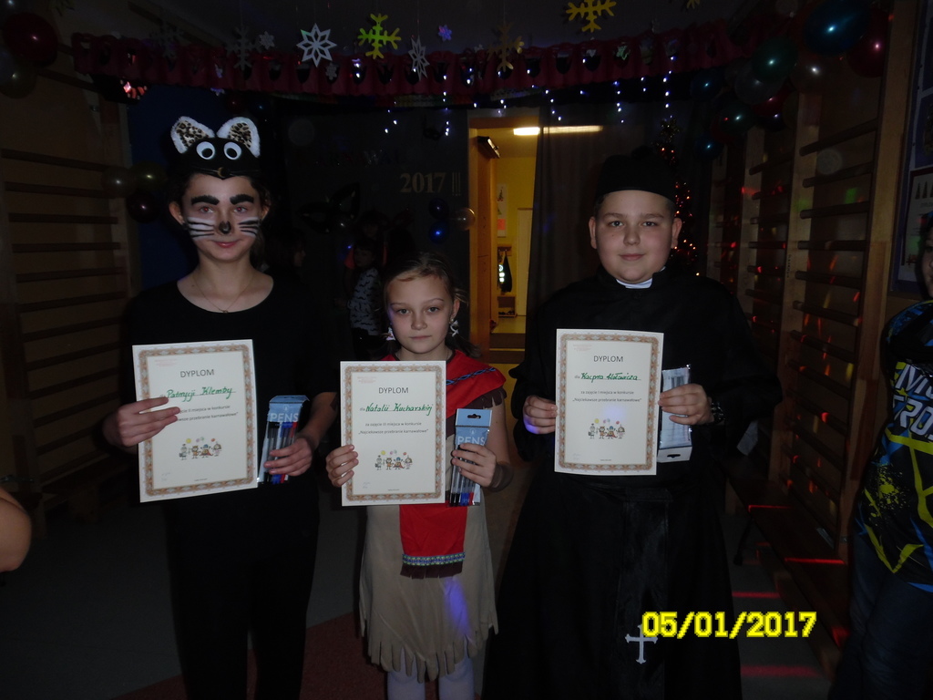 W kategorii klas młodszych konkurs na najciekawsze przebranie wygrali: Przemek Redlicki, Lena Szewczyk, Rafał Winiarski i Karolina Kucharska. Dyplomy i upominki dla młoszych zostaną wręczone w poniedziałek. RM.