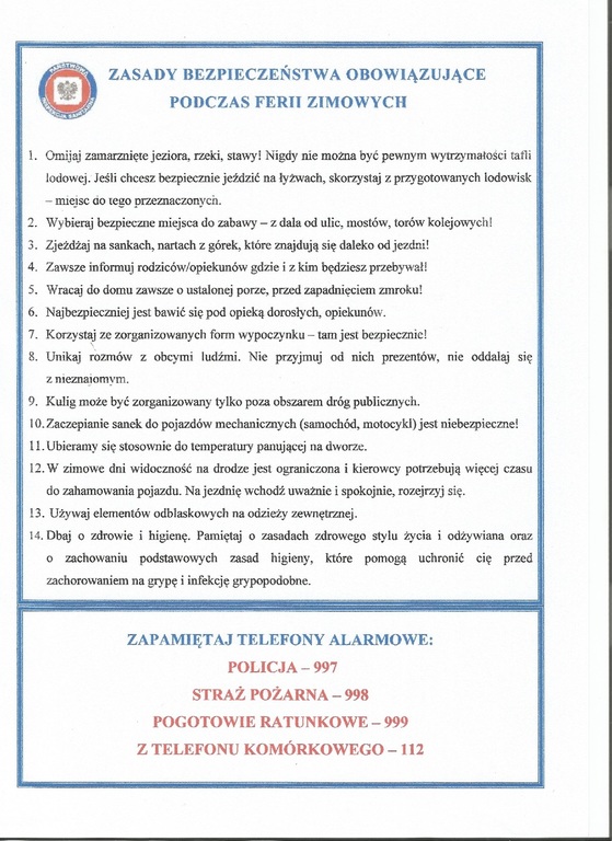 Ferie zimowe to czas odpoczynku i rozrywki, ale też czas, kiedy czyha na rozbrykane maluchy sporo niebezpieczeństw. Warto, by dzieci wiedziały, jak zadbać o zdrowie i bezpieczeństwo, ale też jak spędzić czas mądrze i z pożytkiem dla siebie.