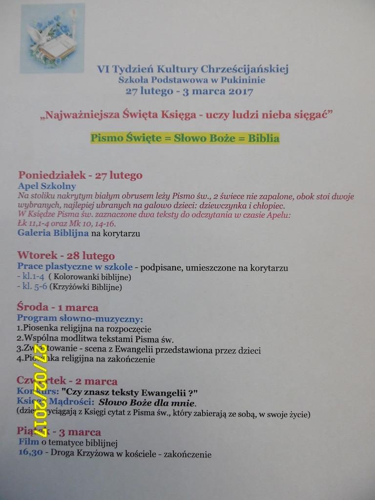 27 lutego - inauguracja VI Tygodnia Kultury Chrześcijańskiej pod hasłem "Najważniejsza Święta Księga - uczy ludzi nieba sięgać".