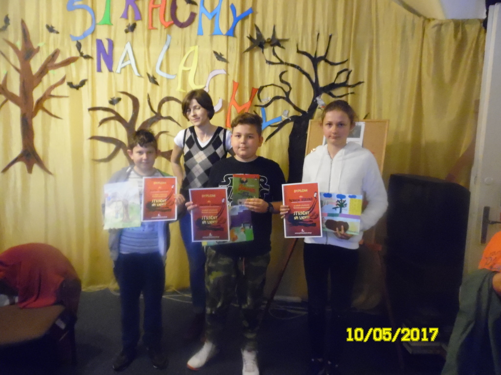 i Gang spod Gilotyny". Jury wybrało 3 prace, wszystkie uczniów z naszej szkoły: Kacpra Wołowicza, Patrycji Klemby i Piotra Wolskiego. Praca Kacpra będzie reprezentować bibliotekę w Rawie podczas finału akcji "Strachy na Lachy", który odbędzie się 13 maja w Kutnie.
