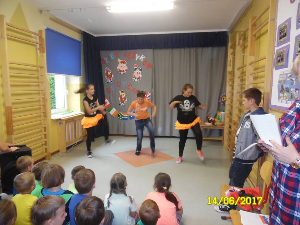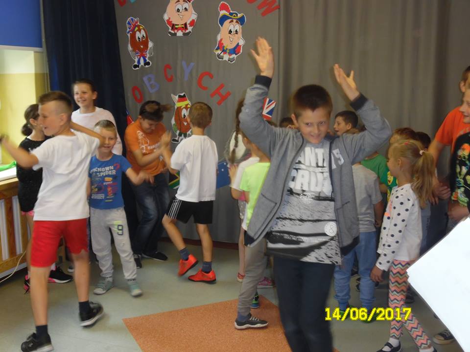 Jak co roku w naszej szkole w czerwcu odbył się Dzień Języków Obcych. Uczniowie brali udział w quizach dotyczących państw europejskich, odgadywali flagi, stolice, bajki, przedmioty, związane z danym krajem europejskim. Nie zabrakło również zabawnych ciekawostek, zagadek. Co odważniejsi uczniowie mogli zatańczyć w rytm walca wiedeńskiego, polki, flamenco, czardasza. Całą imprezę uświetniły uczennice klasy czwartej i piątej, prezentując przygotowane przez p. Ogińską i p. Włostowską układy taneczne. Na koniec wszyscy chętni mogli zatańczyć tzw. belgijkę.