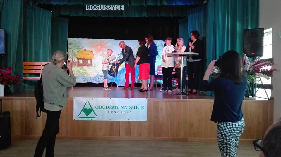 2 czerwca 2017 w CEK w Boguszycach odbyło się uroczyste podsumowanie II Edycji Konkursu "Szkoła z Sercem" - ekologicznie pomagamy. Zebrane fundusze ze zbiórki surowców wtórnych przekazane będą na wsparcie podopiecznych Fundacji "Obudźmy Nadzieję". Cieszymy się, że możemy pomagać innym!