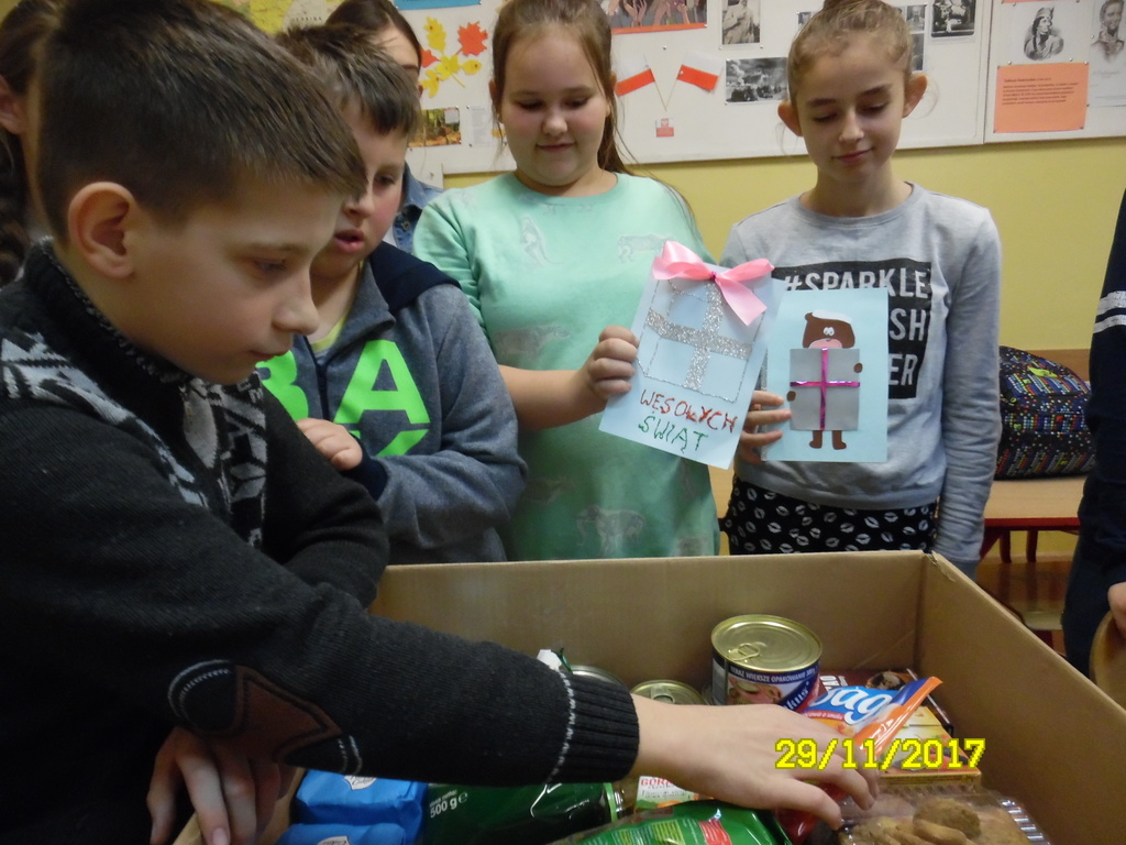 Klasa VI bardzo szybko i sprawnie zebrała produkty na paczkę żywnościową dla naszych Rodaków mieszkających na Wschodzie, poza granicami naszego kraju. Każdy uczeń przyniósł jakiś produkt, a wspólnie wykonali i podpisali kartki świąteczne z życzeniami. Podziękowania dla Was i Waszych Rodziców za zaangażowanie się w tę piękną i potrzebną akcję charytatywną! R. Maciejewska