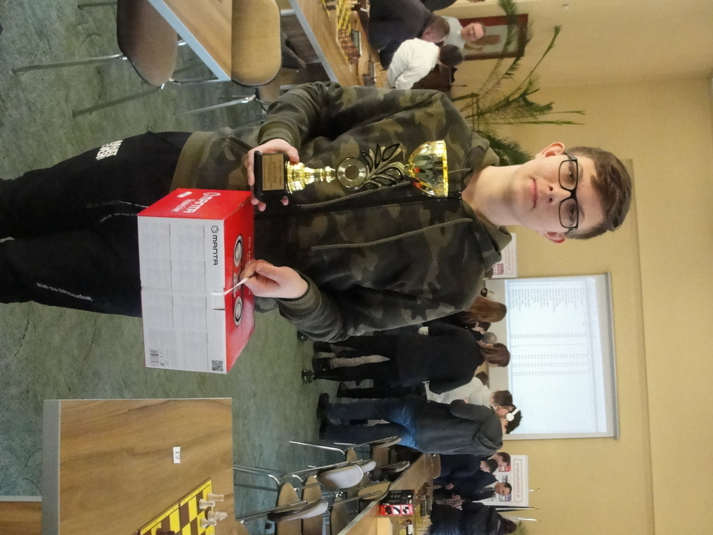 Mikołaj Marud zajął II miejsce w kategorii uczniów do lat 15, za co otrzymał puchar