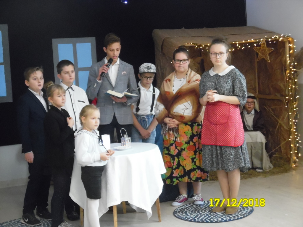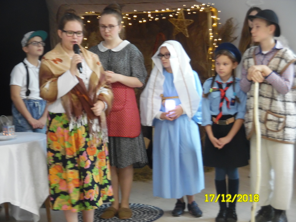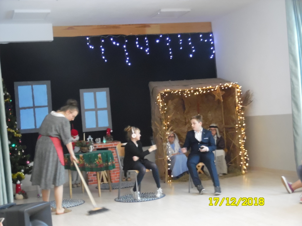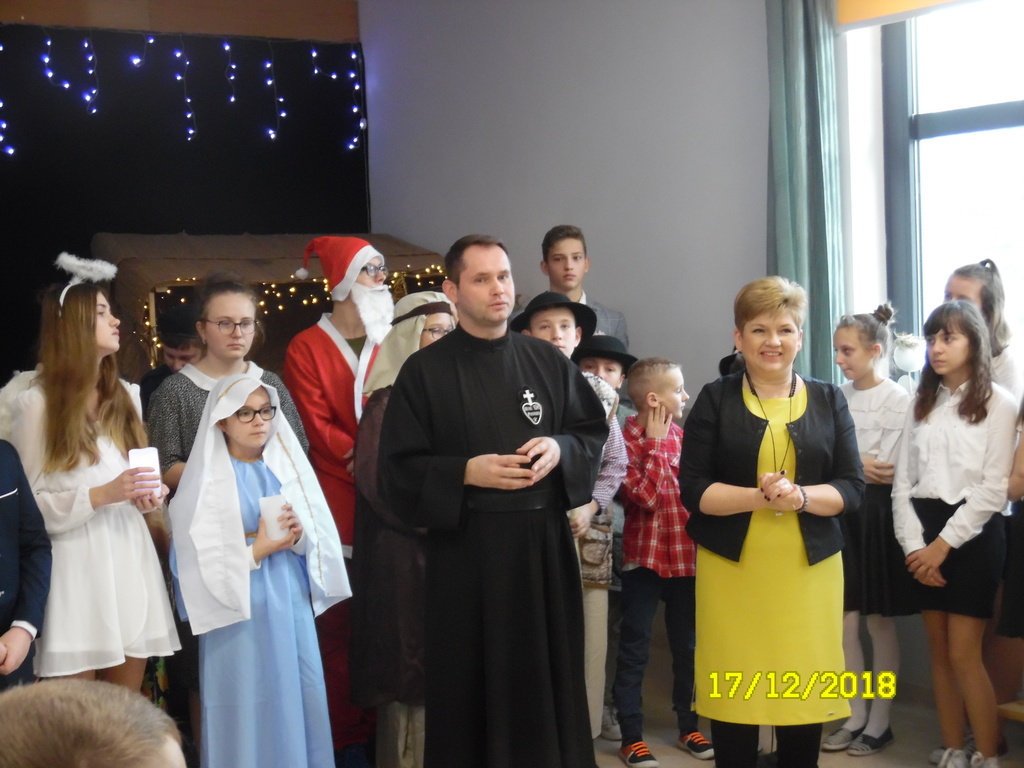 Dzisiaj, tj. 17 grudnia br., w naszej szkole zaprezentowano jasełka, które wprowadziły całą szkolną społeczność w radosną atmosferę oczekiwania na Święta Bożego Narodzenia. Przedstawienie pokazało, że w dzisiejszych czasach: zabiegania, pośpiechu, zakupów, reklam łatwo zapomnieć o tym, co w tych świętach powinno być najważniejsze. Miłość, bliskość, czas spędzony z rodziną biorą się z wiary, że naprawdę w naszym życiu rodzi się Bóg. Uczniowie w kilku scenach wiernie pokazali, jak współcześnie wyglądają przygotowania do świąt. Na zakończenie jasełek przekazali zgromadzonym gościom przesłanie z betlejemskiej groty. Gośćmi dzisiejszego spotkania byli: ojciec Łukasz Nawotczyński, przeor zakonów pasjonistów i proboszcz parafii św. Pawła od Krzyża w Rawie Mazowieckiej, pani Małgorzata Czajka, radna gminy Rawa Mazowiecka oraz rodzice uczniów.