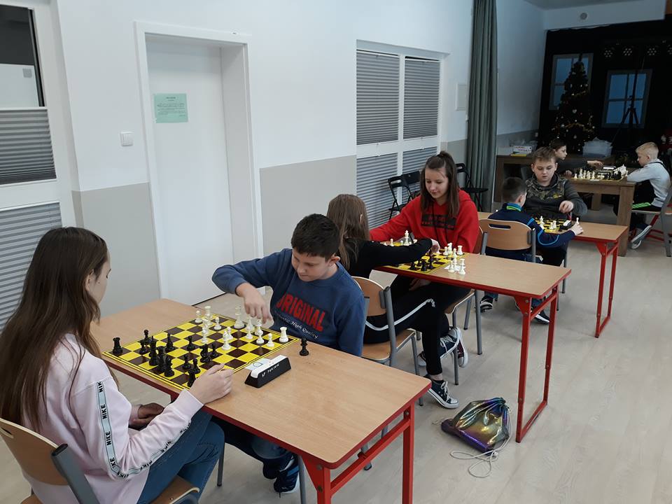 Turniej szachowy zdominował Mikołaj Marud (SP Pukinin). Za nim na podium stanęli: A. Pośniak (ZSP Reymont), M. Marud, Sz. Jaśkiewicz (obydwaj z SP Pukinin), B. Woszczyk (ZSP Reymont), J. Bernacik (SP Pukinin). Kategorie szachowe zdobyło 9 osób. Gratulujemy!