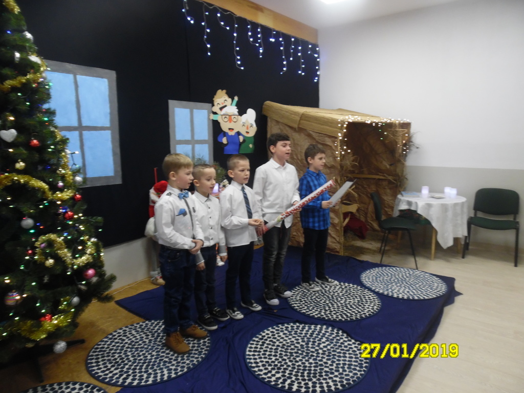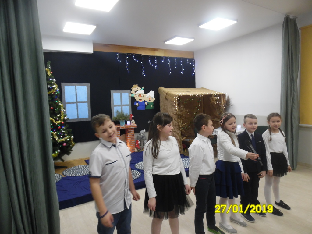 Po raz kolejny odbyła się nasza impreza środowiskowa pod nazwą "Niedziela z Babcią i Dziadkiem". Po raz pierwszy miała miejsce w budynku nowej szkoły. 27 stycznia br. o godz. 15.00 największa sala w naszej szkole wypełniła się po brzegi przybyłymi Babciami, Dziadkami, Rodzicami, którzy obejrzeli występy swoich wnuków i dzieci. Uczniowie klas IV-VIII zaprezentowali jasełka, zaś dzieci z przedszkola i klas I-III wystąpiły z repertuarem muzycznym przygotowanym specjalnie na tę okazję. Młodzi aktorzy i posenkarze zostali nagrodzeni brawami. Miłe niedzielne spotkanie zakończyło się słodkim poczęstunkiem.