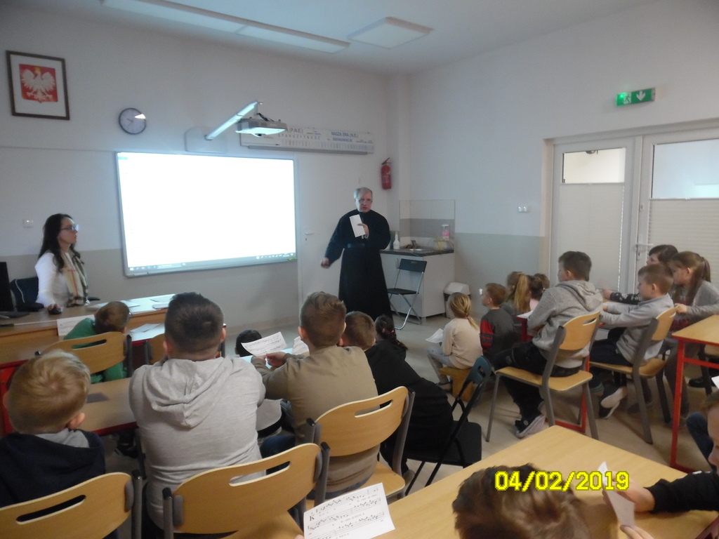 W minioną niedzielę, 3 lutego br., uroczystą mszą św. w intencji naszej szkoły zainaugurowano VIII Tydzień Kultury Chrześcijańskiej. W budynku szkoły wydarzenie to rozpoczęło się uroczyście w poniedziałek, 4 lutego, od apelu, na którym został przedstawiony program całego tygodnia. W tym roku motywem przewodnim będzie muzyka religijna. Gościem tego dnia był współorganizator Tygodnia - pasjonista ojciec Jerzy Chrzanowski z małego kościółka w Rawie Mazowieckiej. Po części oficjalnej o. Jerzy zaprezentował uczniom krótki przegląd muzyki religijnej od średniowiecza do współczesności.