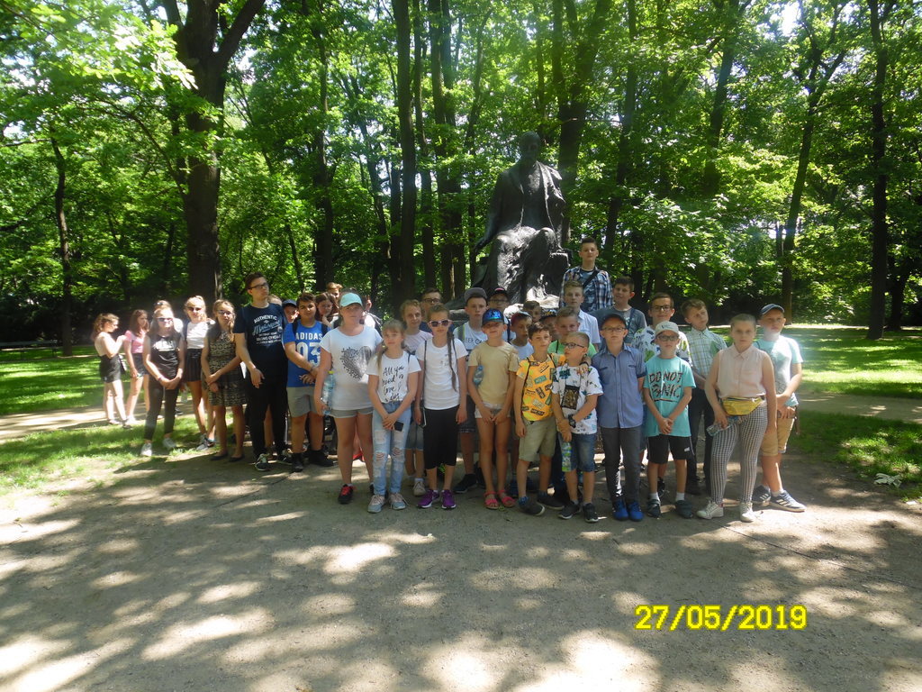 W dniu 4 czerwca 2019 r. uczniowie klas IV-VIII uczestniczyli w jednodniowej wycieczce do Warszawy. Zwiedzili Łazienki, Starówkę oraz byli na spektaklach: "Aladyn" i "Zemsta" w teatrze muzycznym "Sabat".