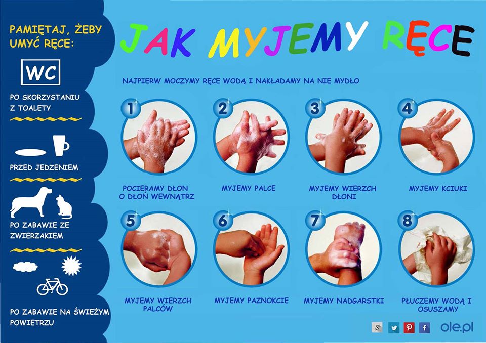 Na tablicach informacyjnych i w każdej toalecie zamieszczone są instrukcje dotyczące prawidłowego mycia rąk. Na korytarzu dostępne są informacje o infolinii NFZ.