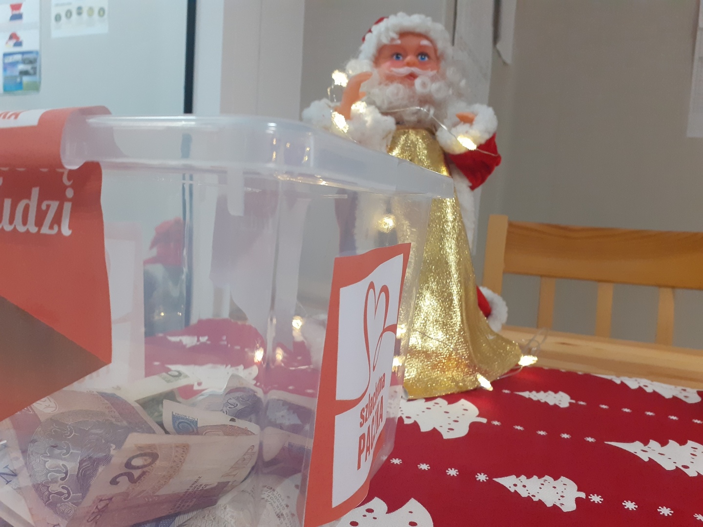 Zebrane produkty będziemy pakować w piątek rano, więc jeśli jeszcze ktoś ma potrzebę podzielenia się swą dobrocią, to zapraszamy jeszcze jutro. W czwartek wieczorem policzymy też zebrane pieniądze i zakupimy pościel oraz wszystkie potrzebne produkty. Z akcji pakowania prezentów i liczenia pieniędzy zamieścimy fotorelację.
