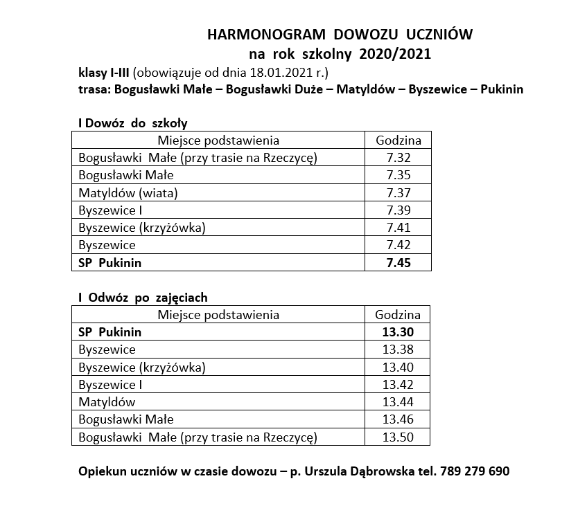 Aktualizacja informacji o organizacji przestrzeni dla klas I-III ze względu na organizację świetlicy porannej.