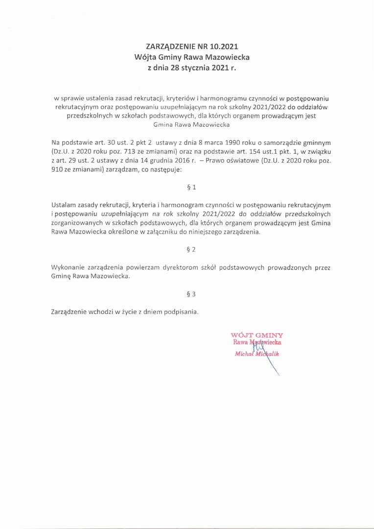 Zapraszamy do zapoznania się z Zarządzeniami Wójta Gminy Rawa Mazowiecka w sprawie ustalenia zasad rekrutacji, kryteriów i harmonogramu czynności w postępowaniu rekrutacyjnym oraz postępowaniu uzupełniającym do klas pierwszych i oddziałów przedszkolnych.