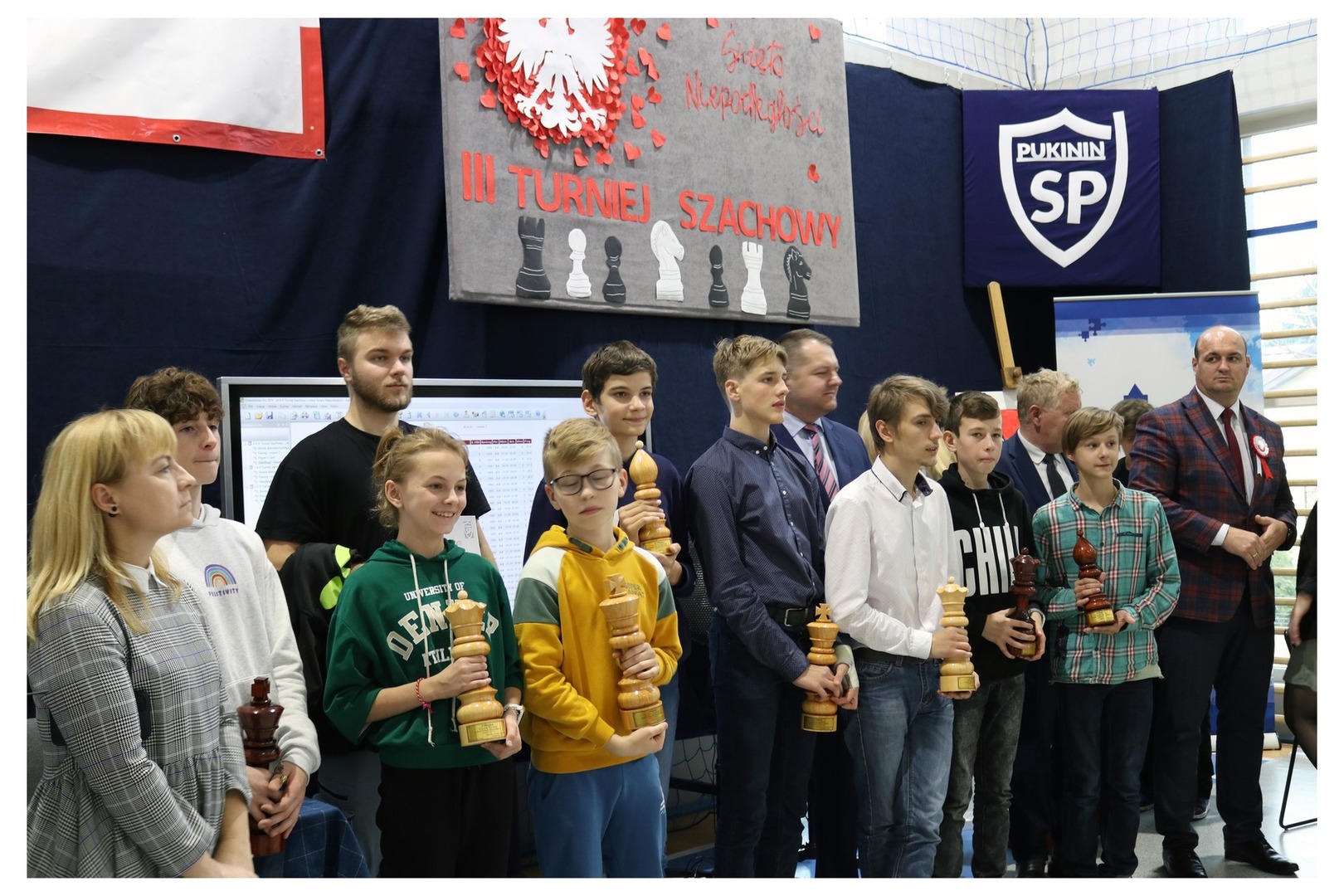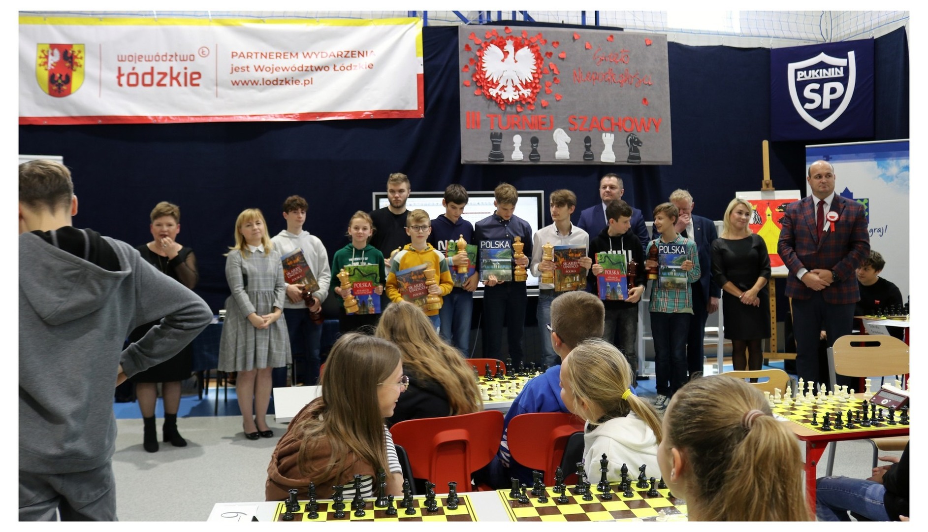 Po raz kolejny w Szkole Podstawowej w Pukininie zorganizowany został Turniej Szachowy z okazji Święta Niepodległości. To już trzecia edycja tego turnieju. Z roku na rok turniej cieszy się bardzo dużą popularnością. W tym roku chętnych dzieci była rekordowa liczba – 170 osób, w związku z tym została powzięta decyzja o rozdzieleniu turnieju na dwa dni : 9 listopada dla klas I-III szkół podstawowych, i 10 listopada dla klas IV-VIII i szkół średnich.
