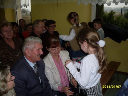 15.01.2014 obchodziliśmy uroczyście Dzień Babci i Dzień Dziadka. To dzień niezwykły, pełen uśmiechów, wzruszeń, łez i radości. Uczniowie klas O - III przygotowali piękny program artystyczny. Bardzo przejęte dzieci śpiewały piosenki, recytowały wzruszające wiersze i składały najserdeczniejsze życzenia swoim babciom i dziadkom. Później wręczały przygotowane przez siebie kartki i drobne upominki. Na koniec uroczystości dzieci zaprosiły swoich gości na kawę, herbatę i pyszne ciasta przygotowane przez rodziców. Spotkanie upłynęło w miłej i serdecznej atmosferze.