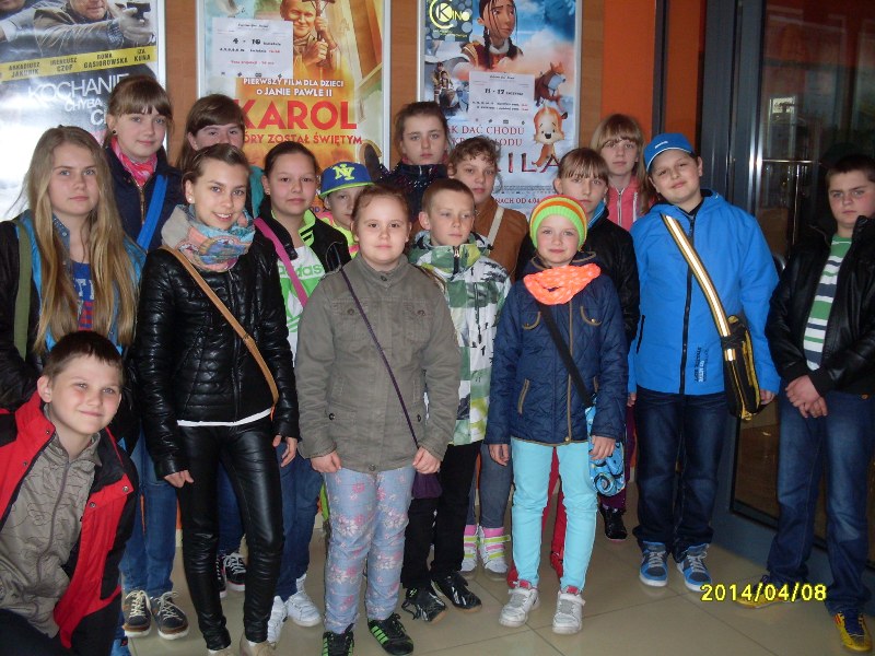 8 kwietnia br. w ramach trwających rekolekcji wielkopostnych grupa 16 uczniów klas IV - VI naszej szkoły wybrała się pod opieką pań: E. Gabryszewskiej-Nogaj i R. Maciejewskiej na film pt.: "Karol, który został świętym". Film, który jest połączeniem filmu fabularnego z udziałem żywych aktorów oraz komputerowej animacji, bardzo spodobał się młodym widzom. Nie tylko dowiedzieli się wiele o życiu Karola Wojtyły jako księdza, biskupa i papieża, ale również zrozumieli, że nie są osamotnieni w walce ze złem na tym świecie.